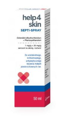- Help4Skin SEPTI-SPRAY – антисептичний (дезінфікуючий) розчин, призначений для місцевого застосування.