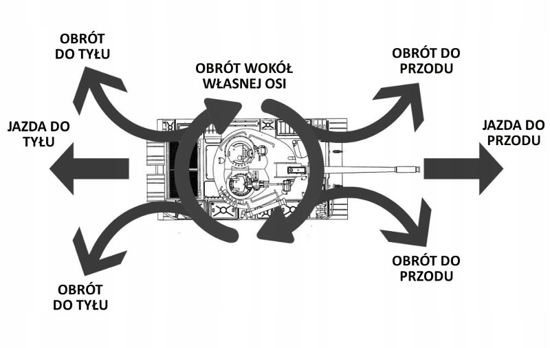 Обладнання танка дозволяє плавно рухатися в будь-якому напрямку. Повернути вліво, вправо, назад, вперед і навіть швидкий поворот на місці не проблема.