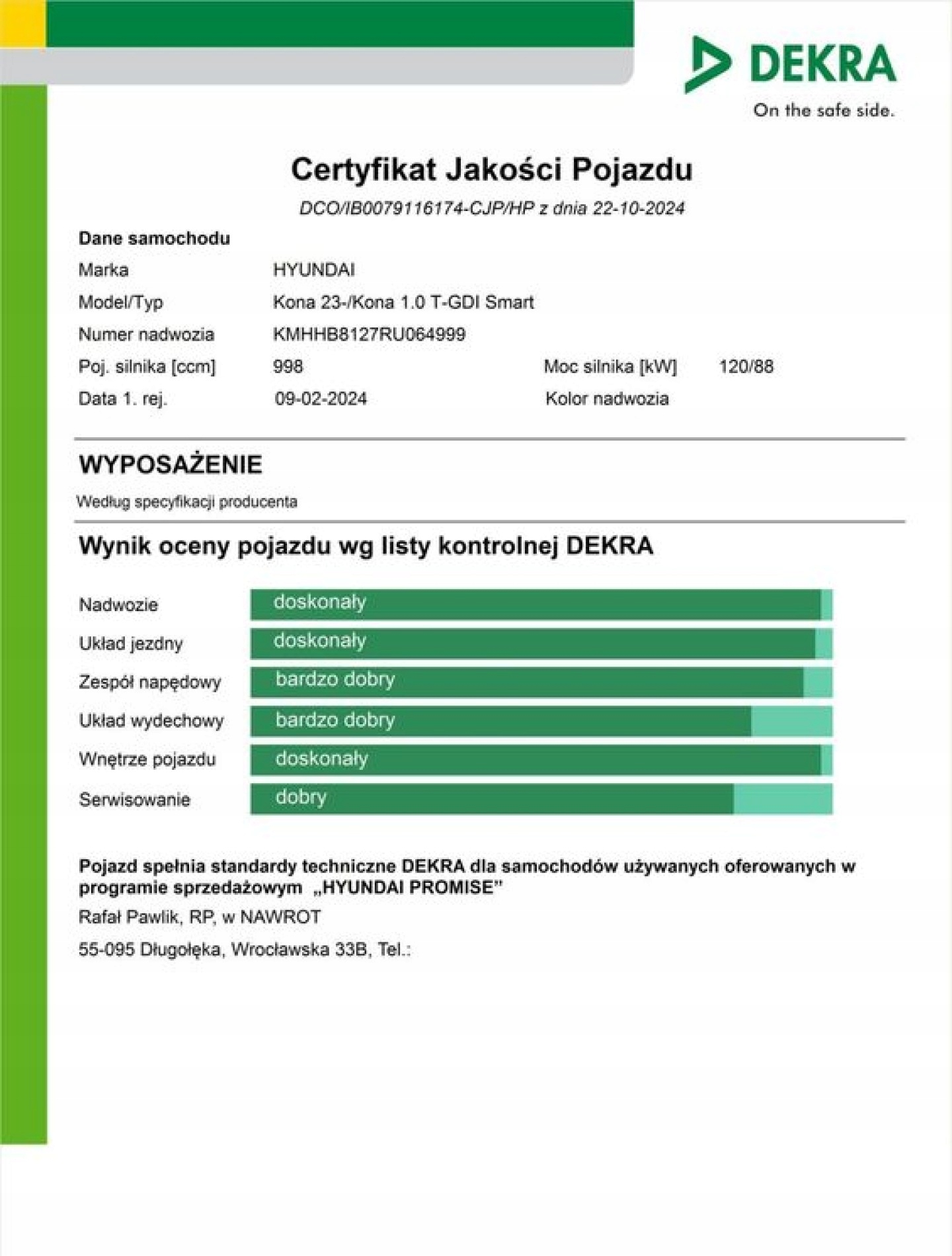 - сертифікат якості з контролем 100 точок транспортного засобу