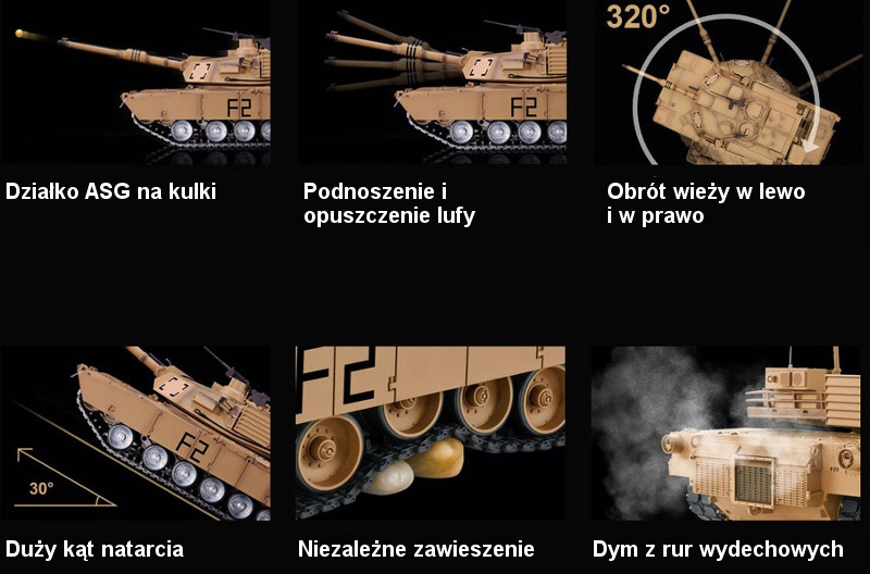 Остання версія з гарматою ASG для 6mm BBs, звуком працюючого двигуна, звуками пострілів, димом із вихлопних труб, новим обладнанням 2,4 ГГц та можливістю інфрачервоного бою з іншими транспортними засобами, обладнаними такою ж системою!< /h1>