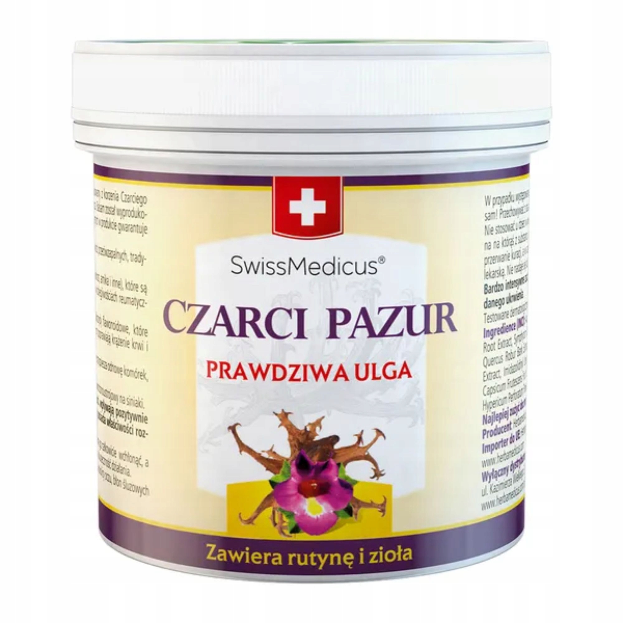 Кіготь диявола з рутиною - це бальзам, який містить речовини з протиревматичними властивостями та властивостями підтримки м'язів. Він особливо добре діє при болях у суглобах, м’язах і хребті, а також при ревматизмі та набряках. Він містить такі трави, як: