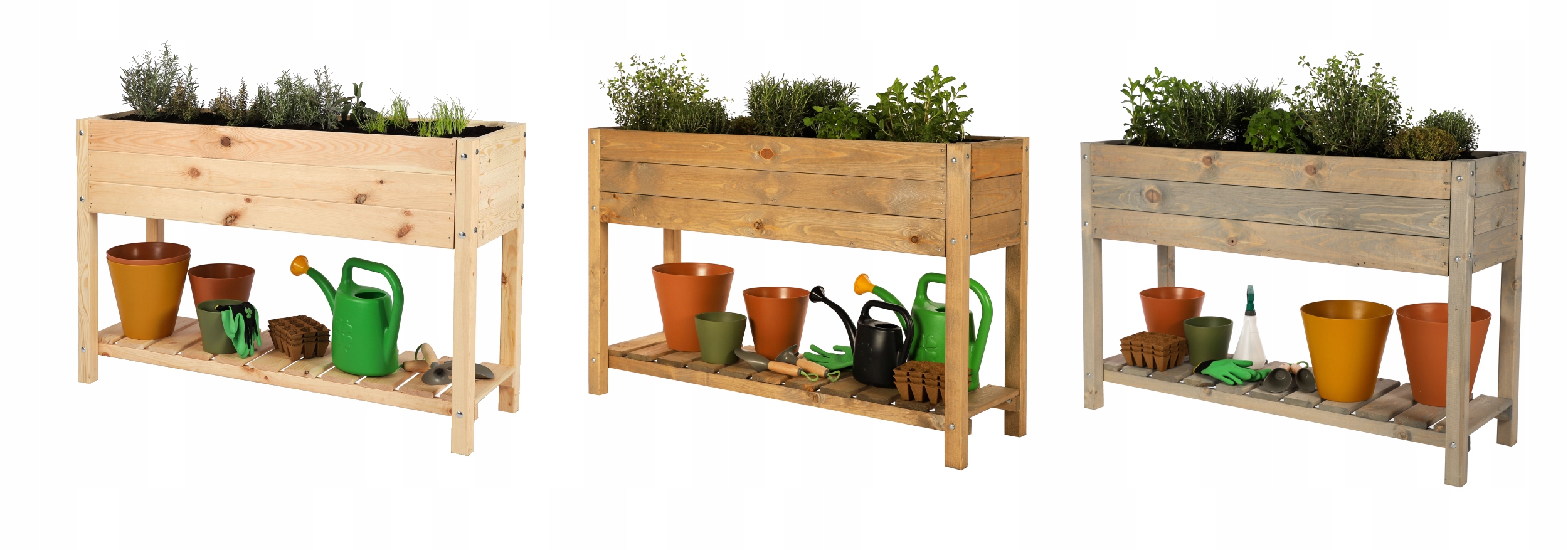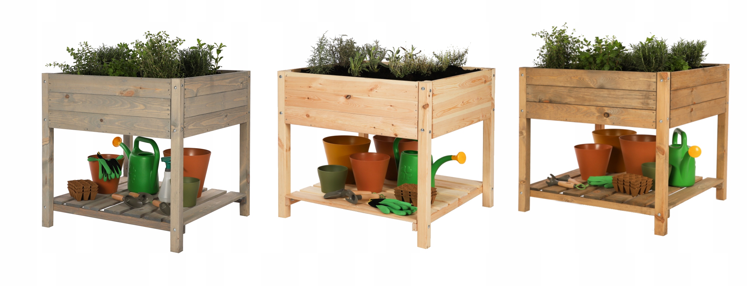 Під ящиком для розсади, трав або овочів є практична полиця для садових аксесуарів.