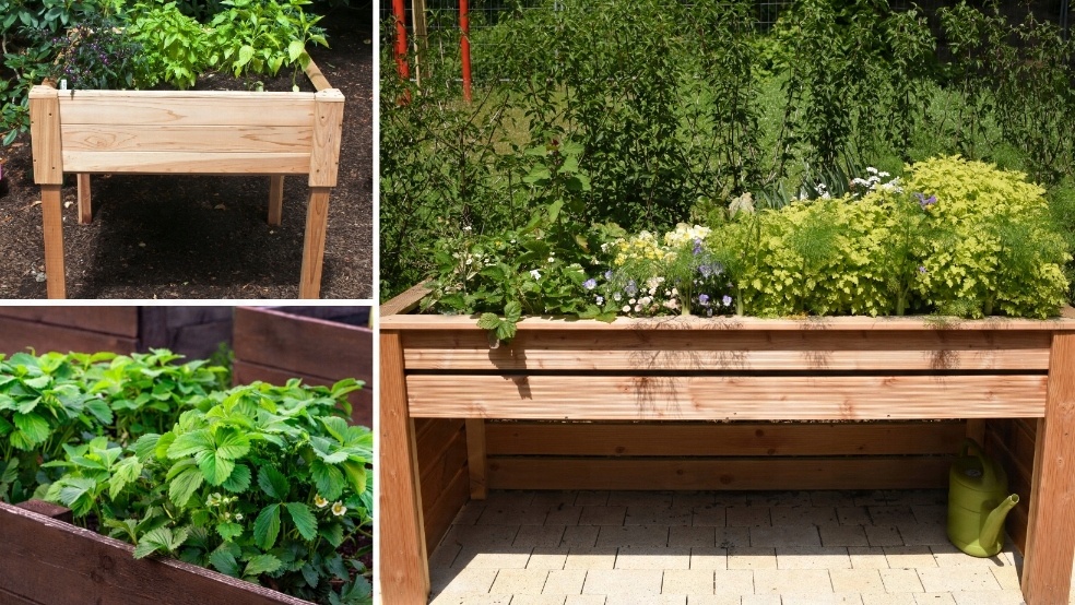 Дерев'яне укриття для вирощування трав і овочів. Усі рослини у вас під рукою.