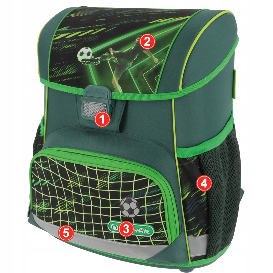 Шкільний рюкзак Herlitz Loop має стабілізуючі ніжки та відбивачі 3M Scotchlite на передніх і бічних кишенях, а також на лямках. Зручна ручка дозволяє комфортно носити шкільну сумку.
