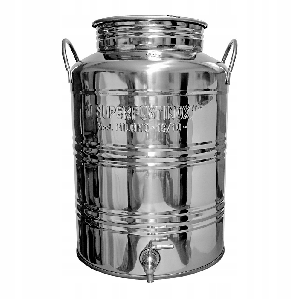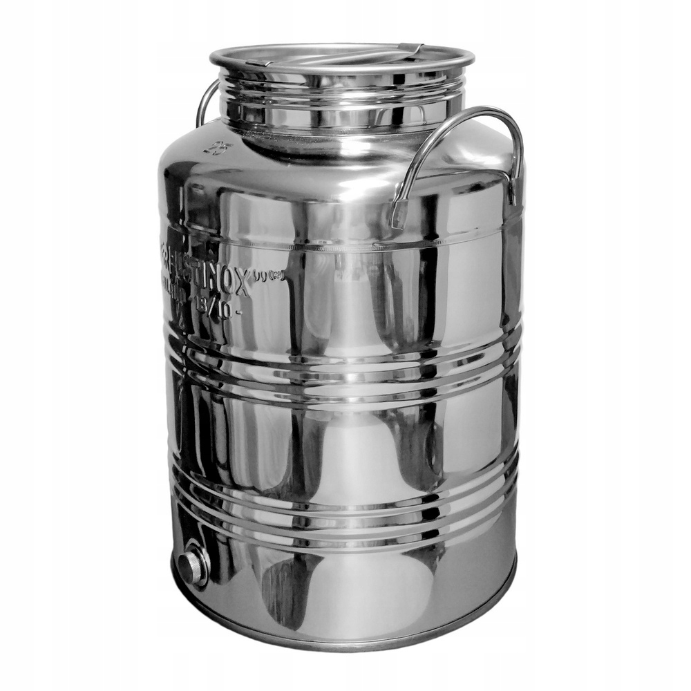 Високоякісна бочка виготовлена з міцної нержавіючої сталі та вміщує 25 літрів рідин або сипучих харчових продуктів.