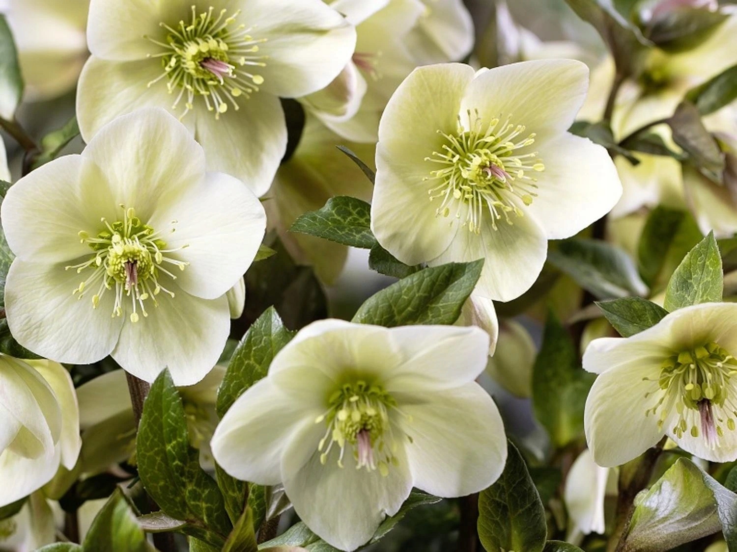 Краса, що прикрасить сад у зимові місяці. Листя виростають з пучка, є нефракційними і шкірястими і темно -зеленими. Він може вирости до висоти близько 20-30 див. Прямі квіткові стебла несуть чудові кремові квіти та вражаюче жовті тичинки посередині.