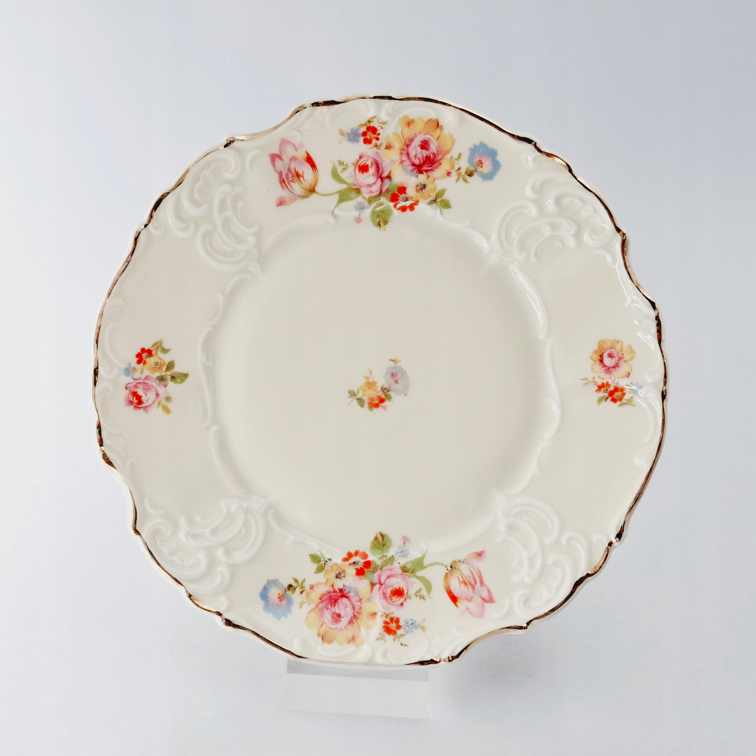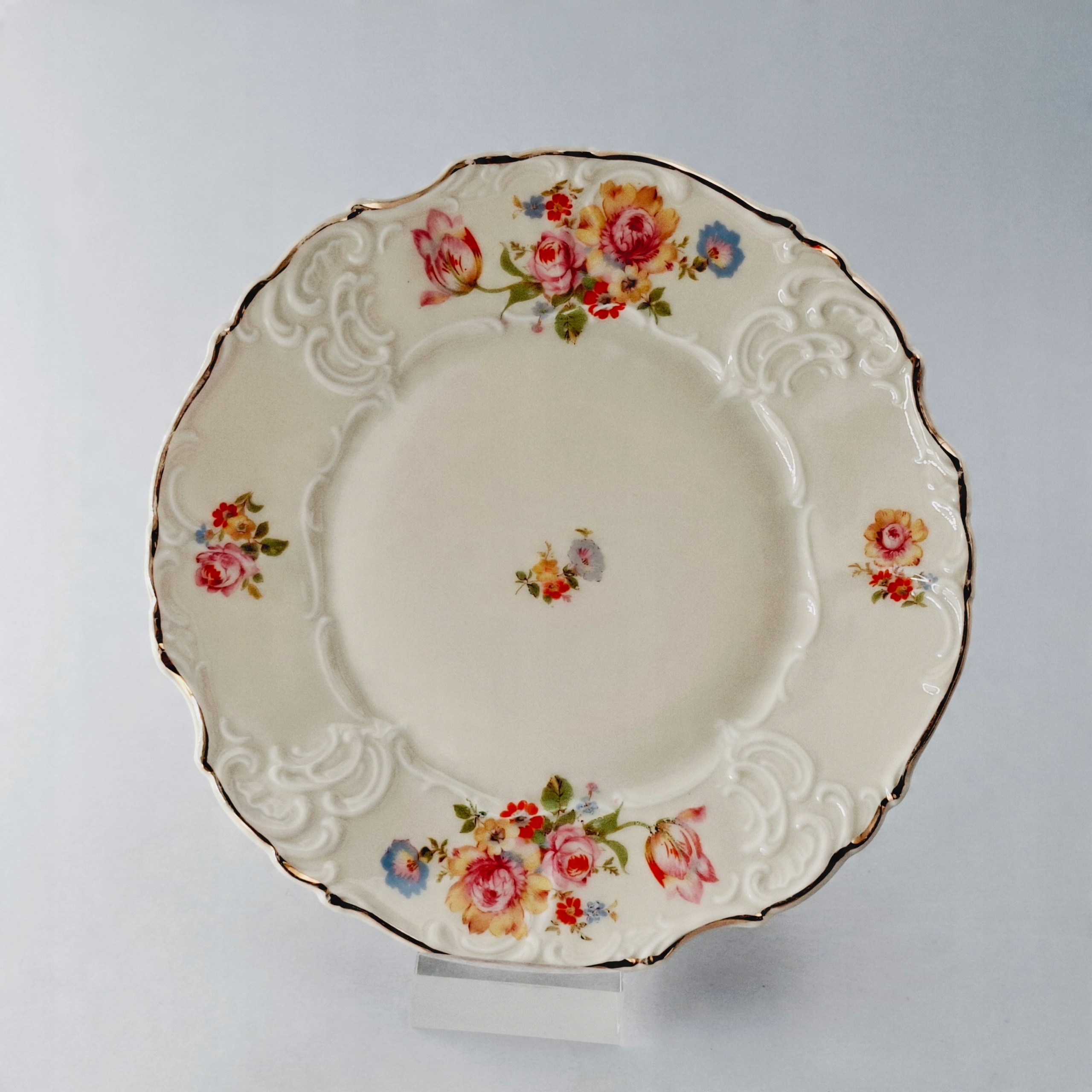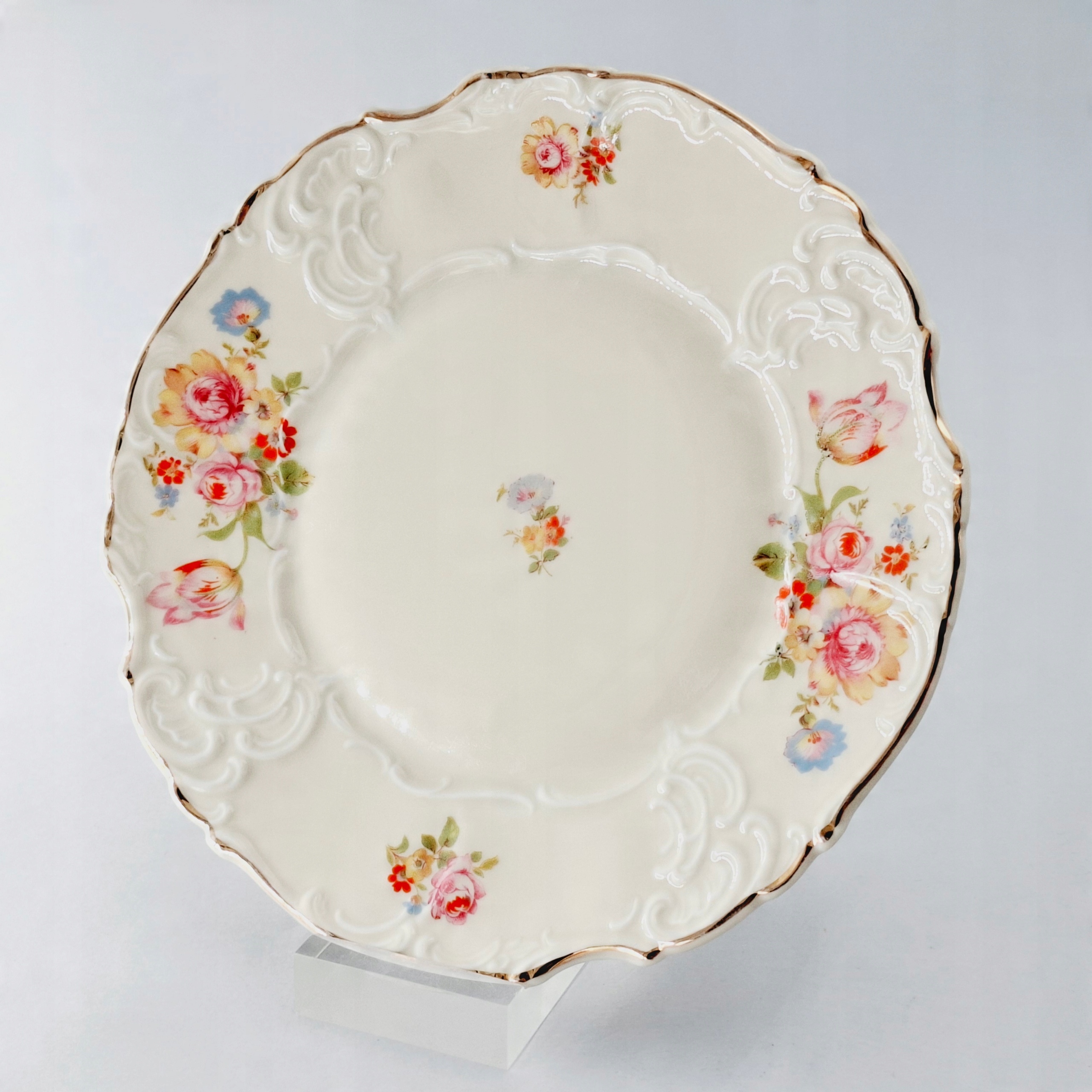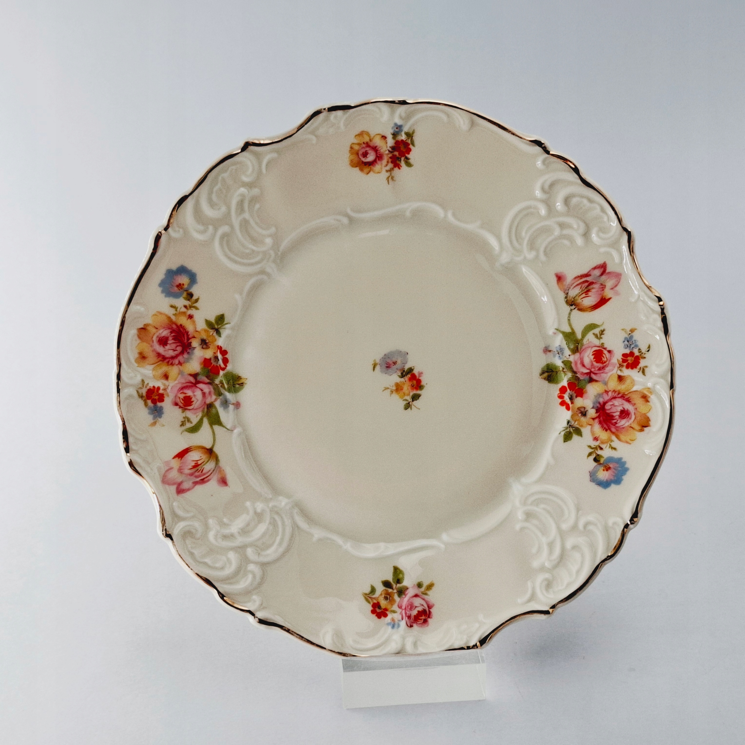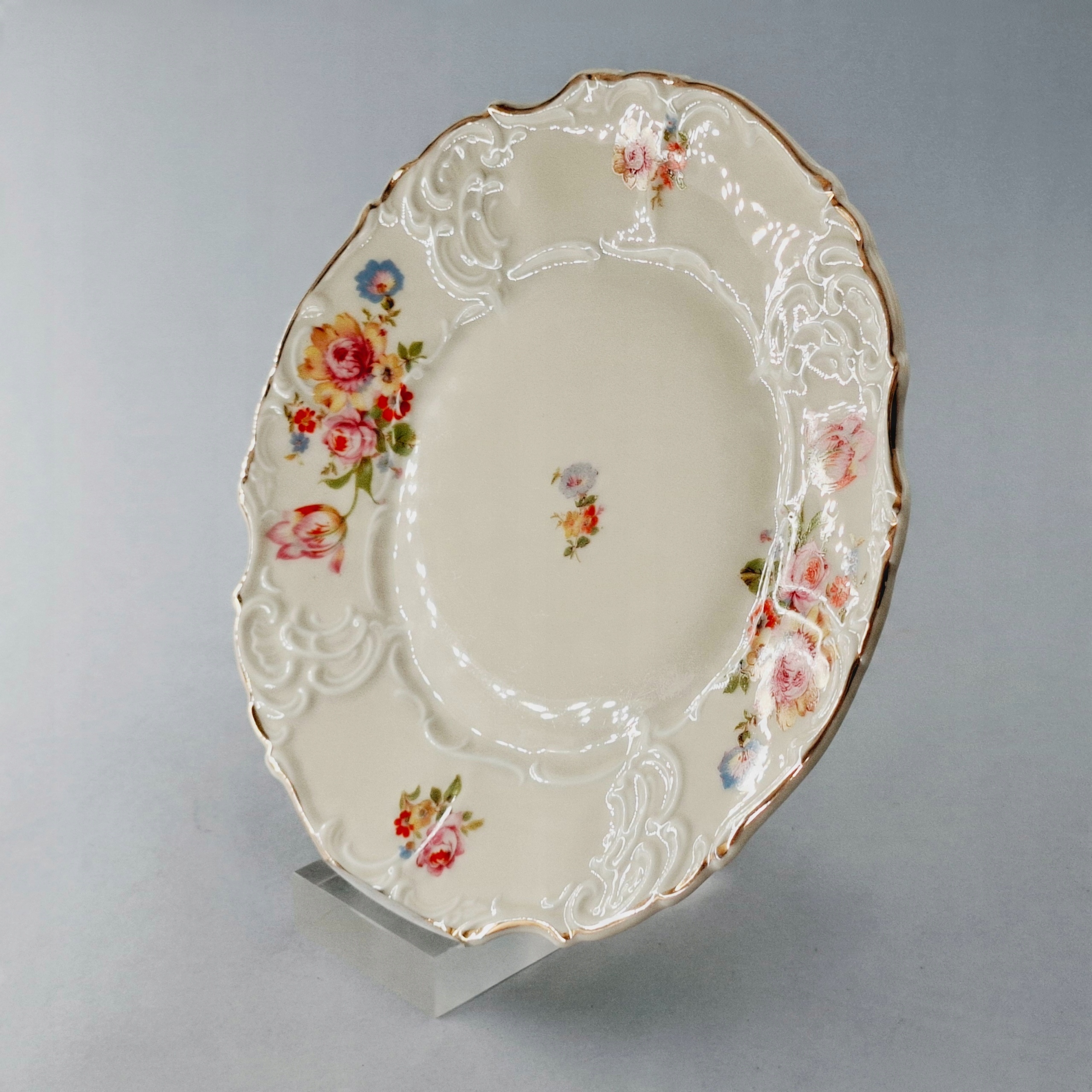 HERTEL JACOB ГАРНА ПОРЦЕЛЯНОВА КРЕМОВА ТАРІЛКА квіти