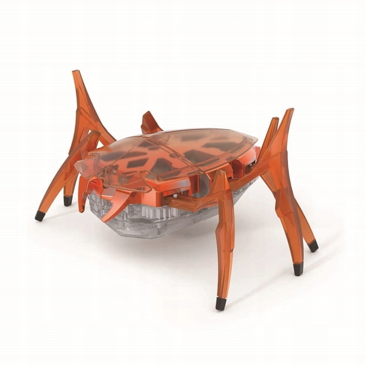 Електронний скарабейце найшвидший Hexbug! Він має напівпрозоре помаранчеве «тіло» і шість рухомих ніжок. Через корпус можна побачити механізми та гвинтики всередині іграшки. Вийшовши на волю, скарабей бігає і пересувається безцільно, натикаючись на стіни, меблі та інші перешкоди. Якщо впаде, то встане сам! Кожна з ніг робота-скарабея рухається 1200 разів на хвилину.