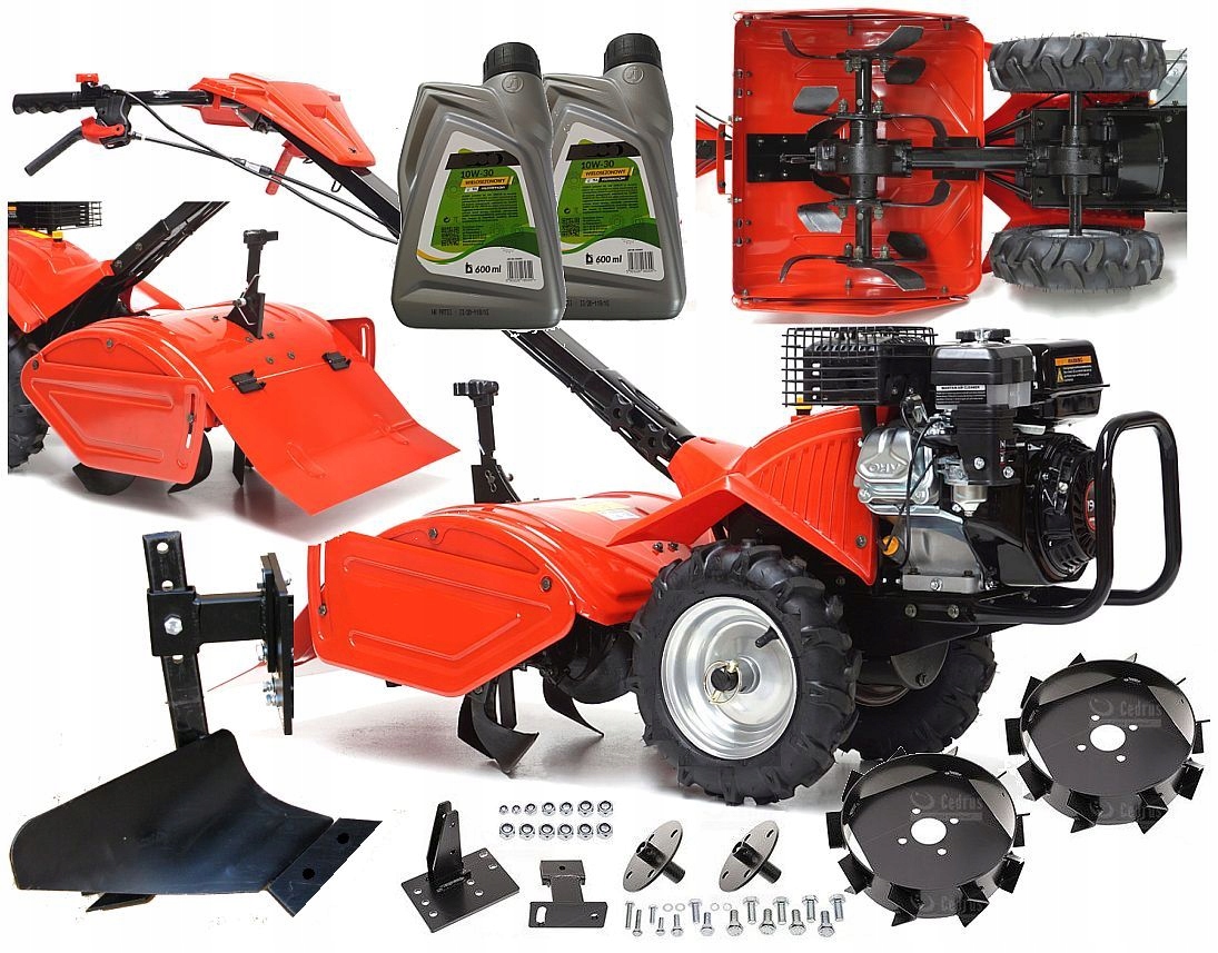 ✔ міцність, надійність, функціональність та дуже високий комфорт роботи. 4 Сильний, професійний американський двигун серії Briggs & Stratton XR950 потужністю до 208 см3 ОВ класифікує машину в області спеціальних пристроїв завдань. Великі сильні ножі Roboc , які вони легко розчавлюють і змішують навіть найважчий ґрунт. Тіллер має 1-стартовий та 1-спинку зворотну та регульовану ручку у двох площинах. Можливість співпраці між обробкою з додатковим обладнанням, таким як: плуг, покриття, копач також збільшує можливості його використання. Тіллер обладнаний корпусом заліза.