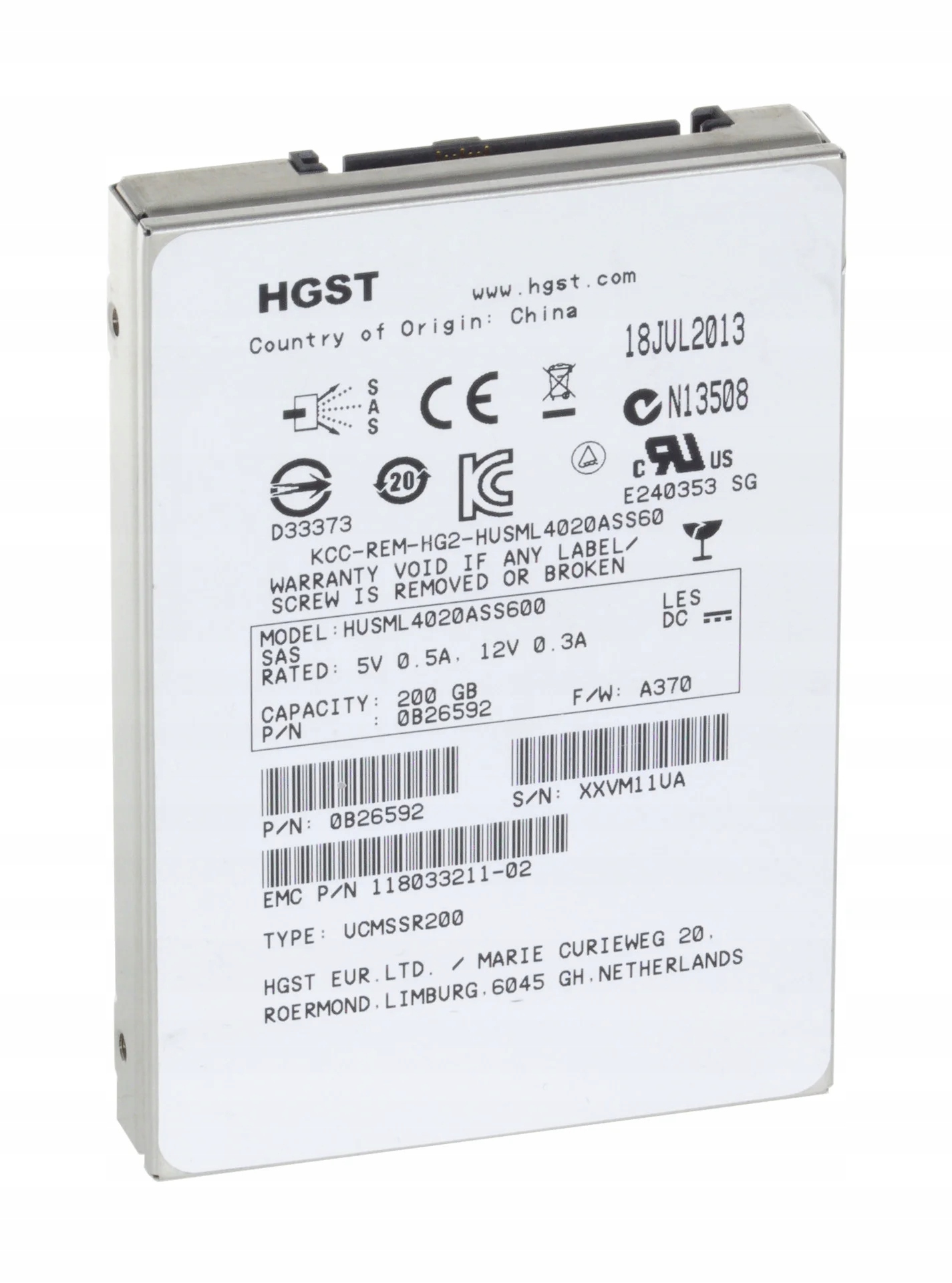 HGST EMC 200GB 2,5 "SSD SAS 6GB HUSML4020ASS600 118033211-02