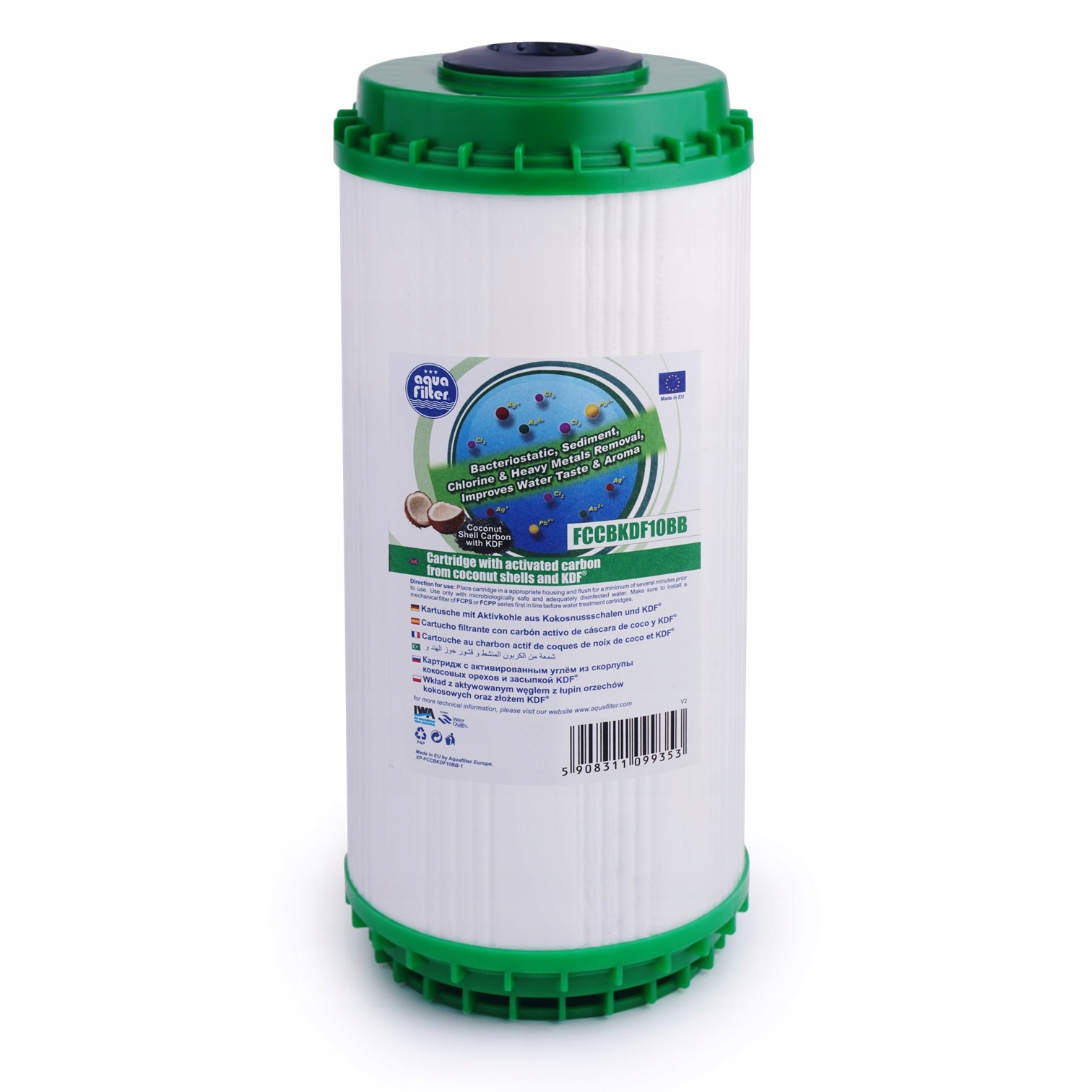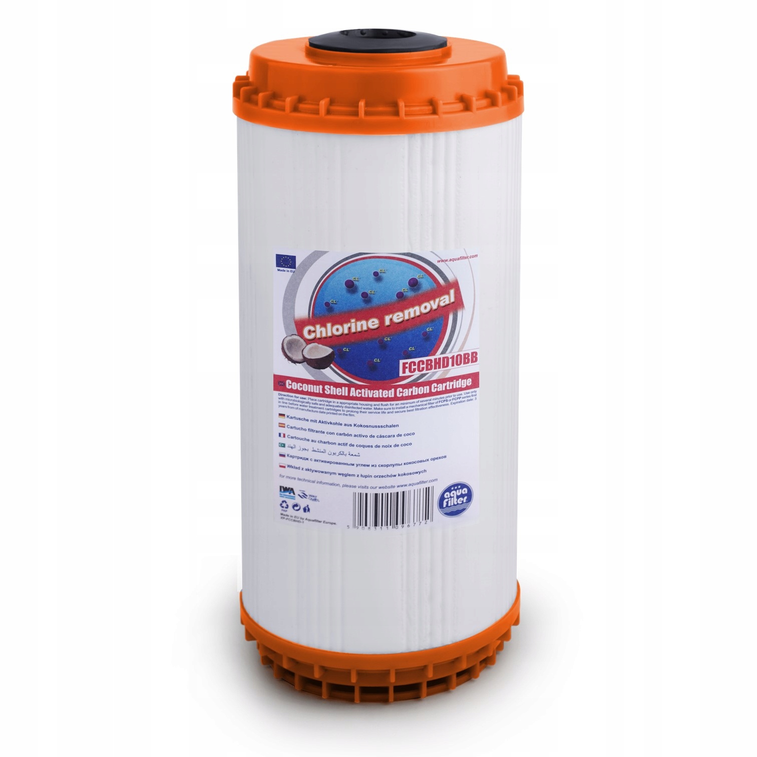 FCCBHD10BB - це картридж, наповнений високоякісним вуглецем зі шкаралупи кокосового горіха. Вони видаляють з води до 99% вільного хлору, хлорпохідних розчинників, ароматичних вуглеводнів (покращують смак і запах води), а також до 85% хлорпохідних пестицидів, поліароматичних сполук, фенолу, бензолу та органічних речовин. води.