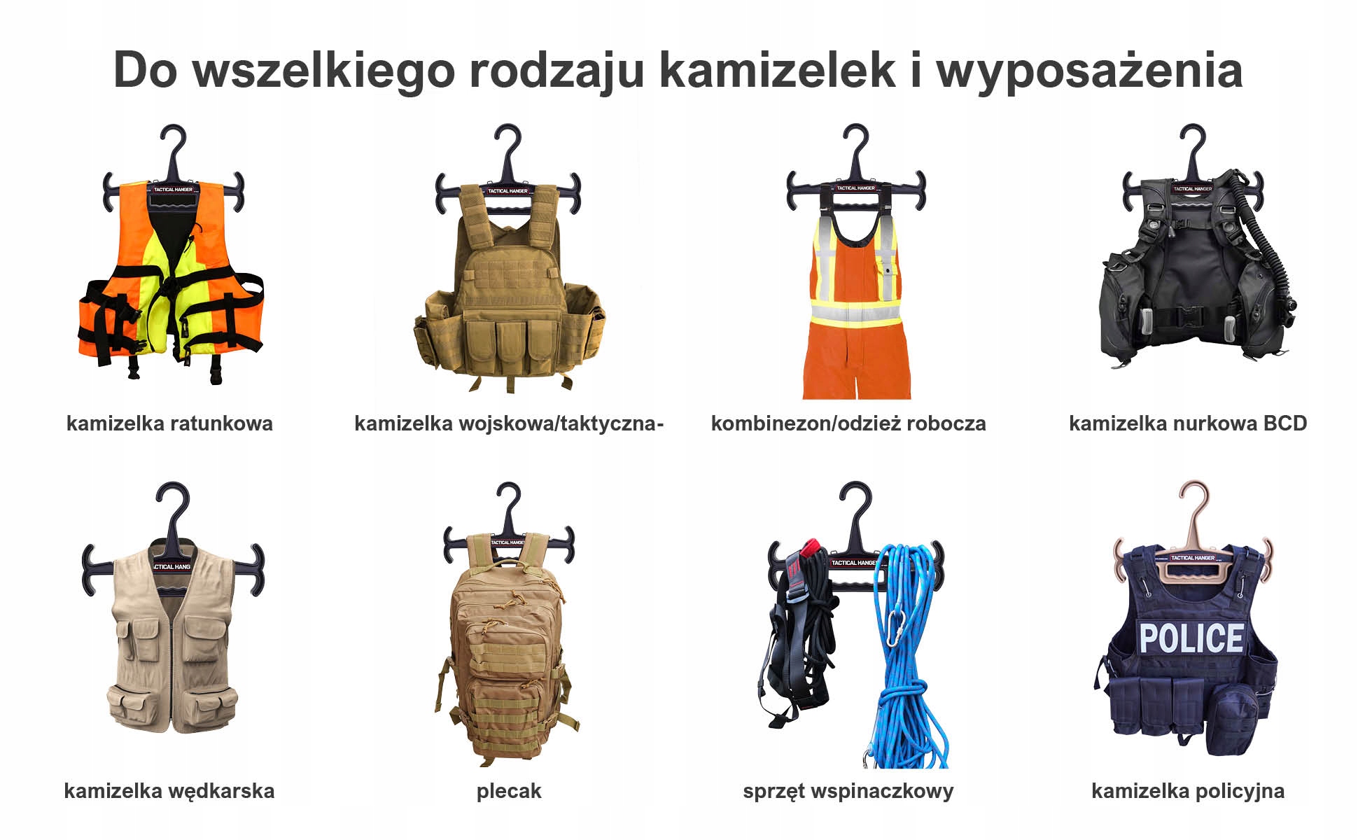 Професійна вішалка для тактичних жилетів, бронежилетів і сервісного обладнання, розроблена для вимогливих користувачів: поліція, пожежна бригада, армія, прикордонна служба, а також військові та любителі виживання.