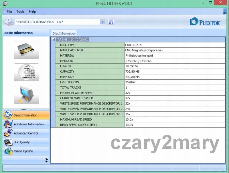 Диск ідеально підходить для запису аудіокомпакт-дисків на рекордери YamahaPlextor Premium 2 у режимі Audio Master Quality Recording або Advanced Audio Master Quality Recording