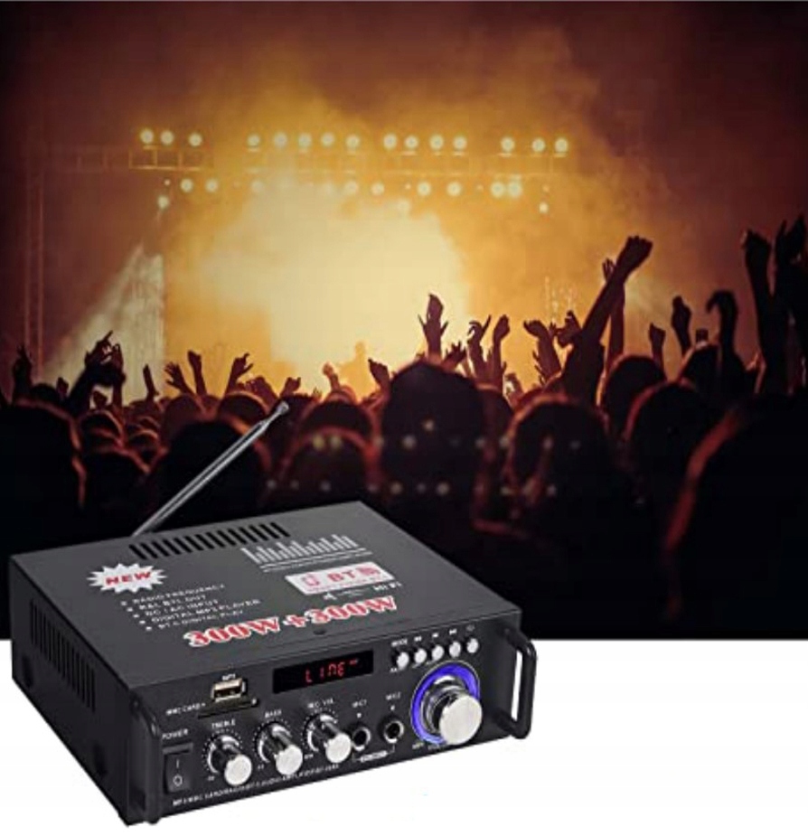 - 2-канальний стереоресивер забезпечує потужність 300 Вт x 2 (максимальна вихідна потужність музики 600 Вт),забезпечуючи чудову якість звуку з чистим і детальним звуком.