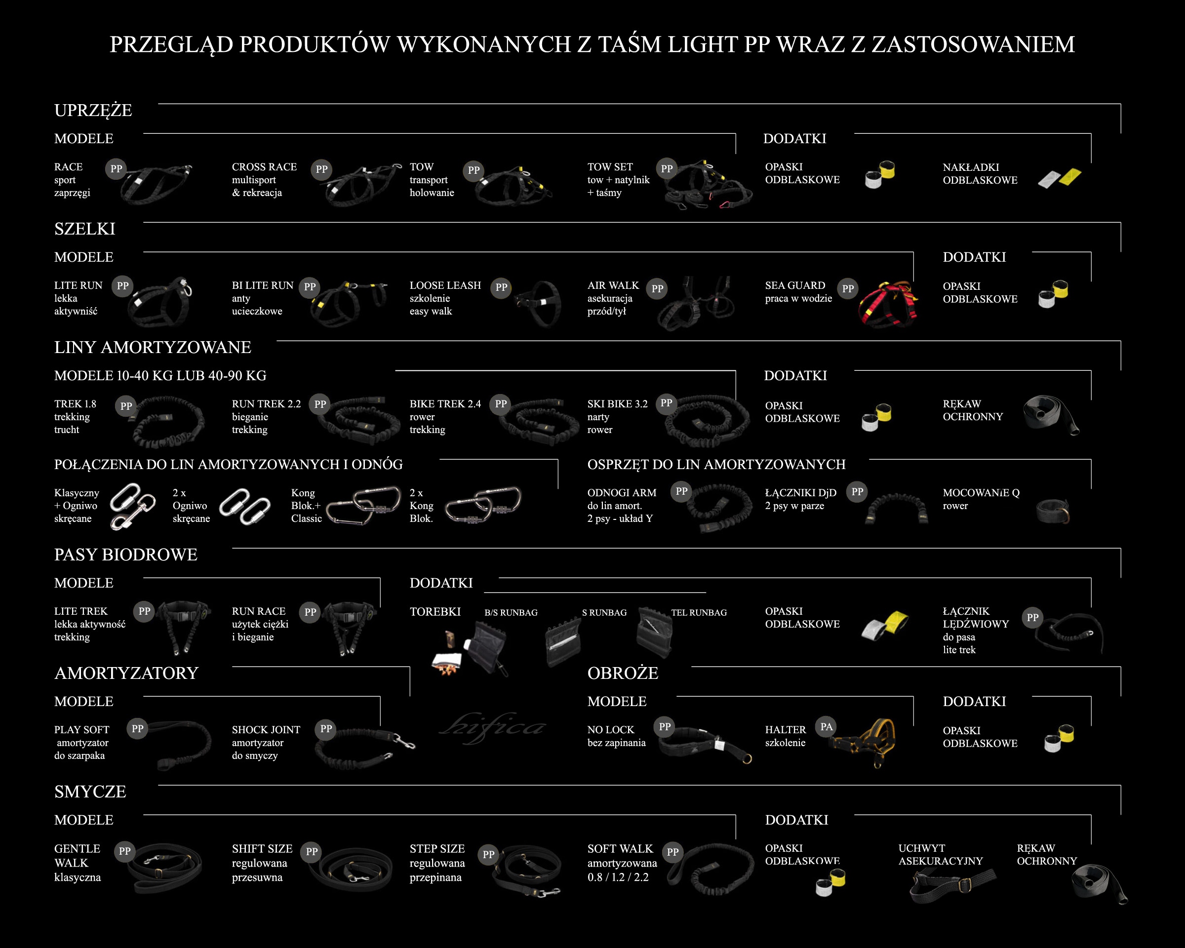 Під час складання елементів, будь ласка, зверніть увагу, що ми виготовляємо все у дві лінії залежно від типу стрічки: світла Light PP лише чорного кольору або стійка b>Alp PA наразі доступний у двох кольорах.