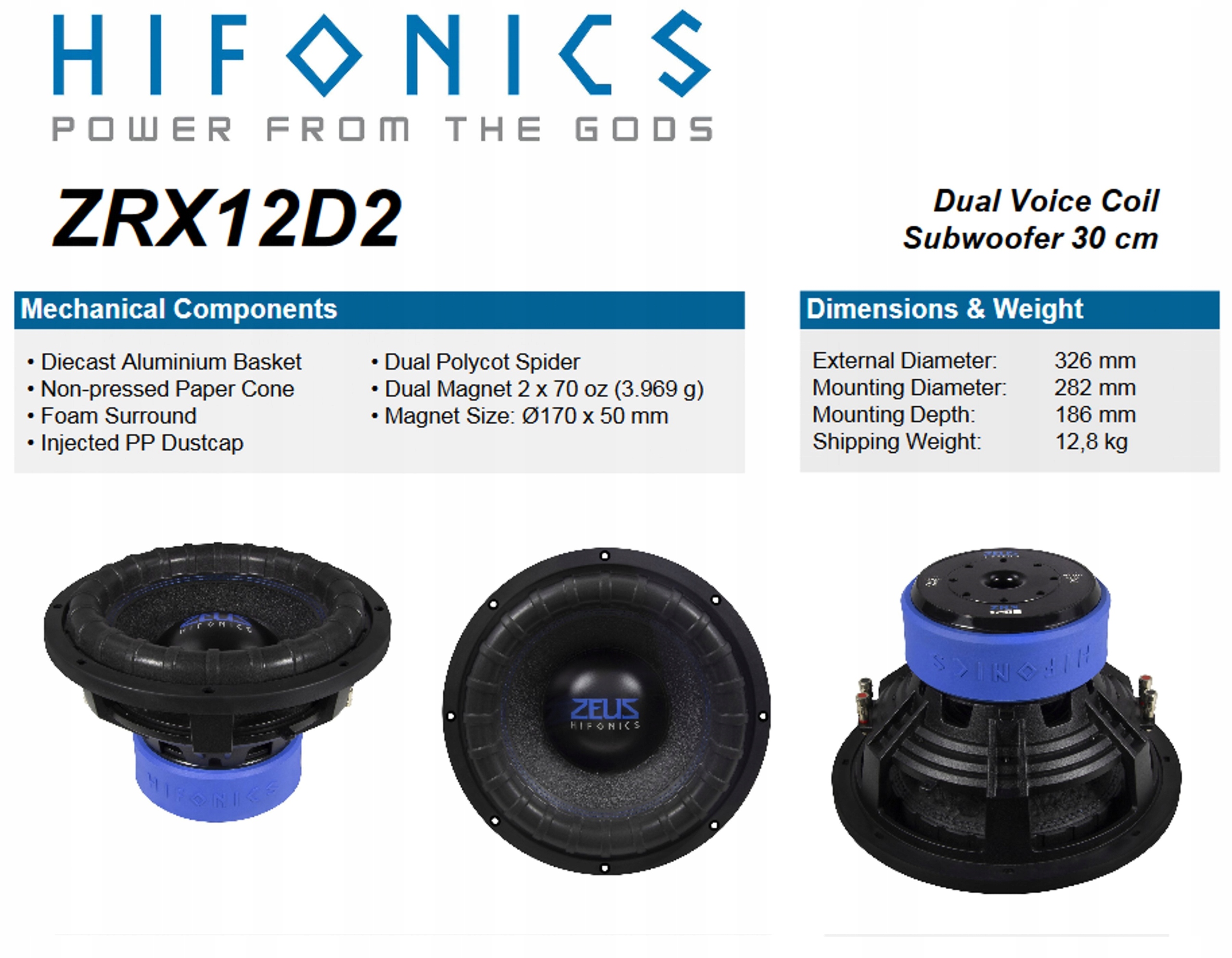 HiFonics ZRX12D2 30 см 1000 Вт RMS 2x2 Ом Установка XTREME Koszalin