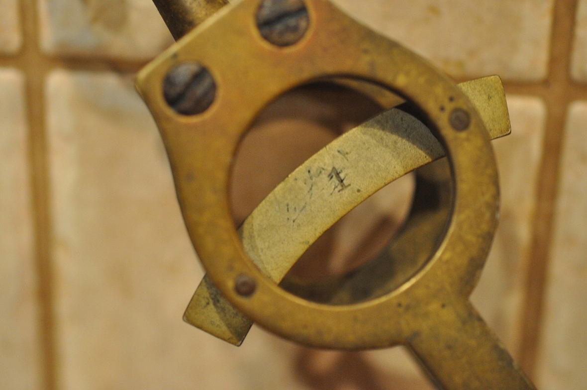 Латунь не чистили - вкрита оригінальною, старою, темною патиною.
