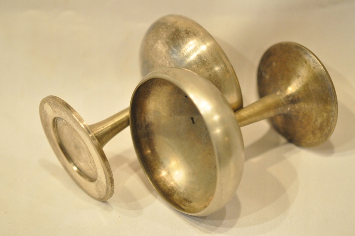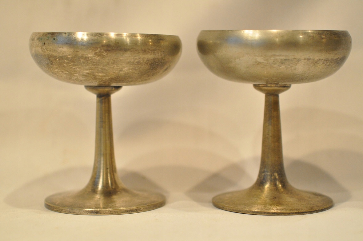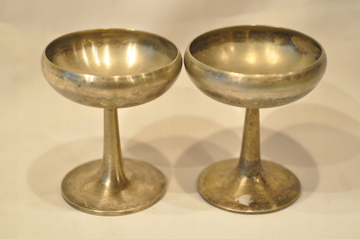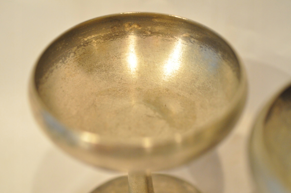Чашки мають оригінальне срібне покриття з можливими потертостями покриття на вигинах.