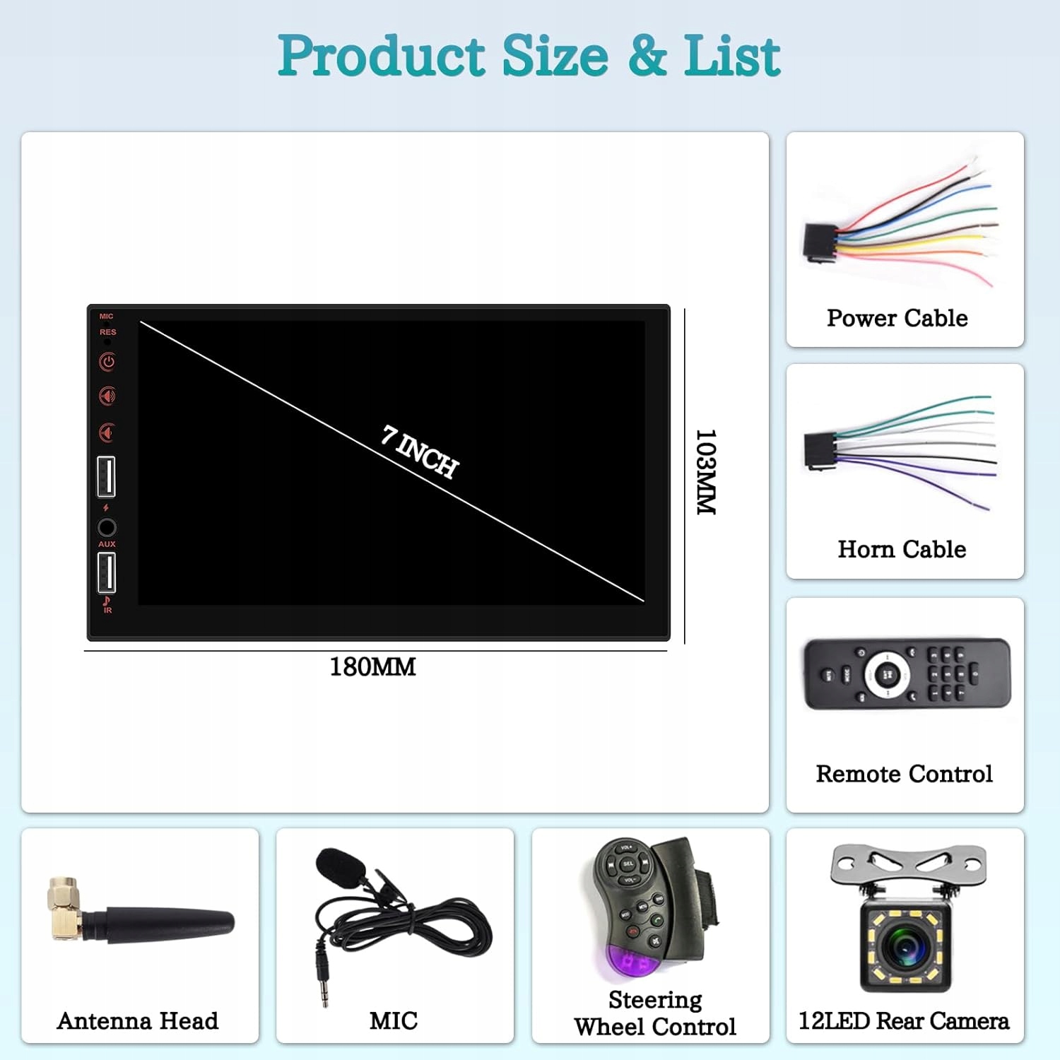 - Автомагнітола 1 din із 7-дюймовим екраном: автомобільна радіостанція Carplay 1 din із 7-дюймовим екраном забезпечує кращу якість зображення. Завдяки 2 портам USB на передній панелі вам не доведеться турбуватися про те, що телефон розрядиться. Автомобільна радіоприймач підтримує функцію Power-Off Memory, що означає, що навіть якщо ви слухаєте половину пісні, відтворення продовжиться там, де ви зупинилися після перезапуску.