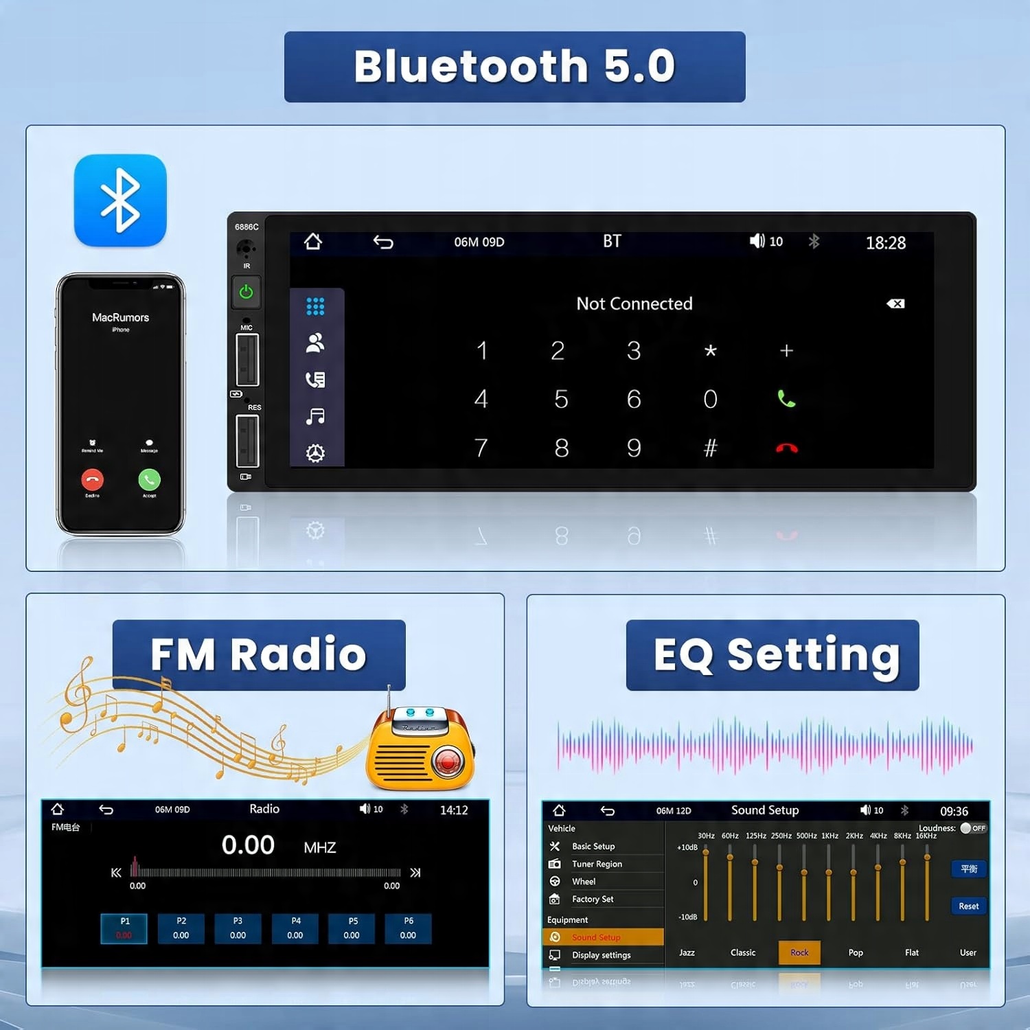 【6,9-дюймовий сенсорний екран 1 DIN CAR Radio】 Розміри радіо Apple Carplay-17 х 5 х 8 см. 6,9-дюймове HD-радіо з сенсорним екраном 1248 x 480 забезпечує чудовий візуальний та тактильний досвід. Оснащений 2 USB -входами, вхідним входом, побудованим мікрофоном та зовнішнім мікрофоном, відповідає різним потребам. Carplay без використання кабелів. Просто підключіть свій iPhone за допомогою Bluetooth Car Radio 1 DIN, а екран 6.9 -дюйм активує функцію бездротового карплея. Голосовий контроль підтримується, щоб викликати функції, використовуючи "Hey Siri" або "OK Google". Він не сумісний з телефонами Huawei та Samsung
