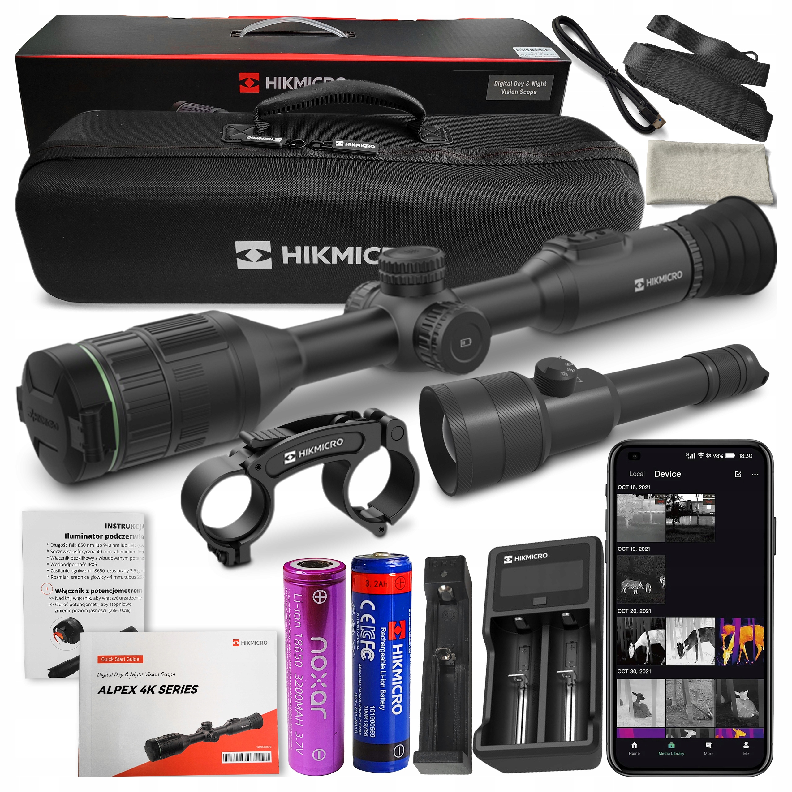 Приціл нічного бачення HIKMICRO від HIKVISION Alpex A50E 4K з ІЧ-тримачем + коротко інфрачервоний освітлювач NOXAR DIR-PRO V2 850/940/980 нм