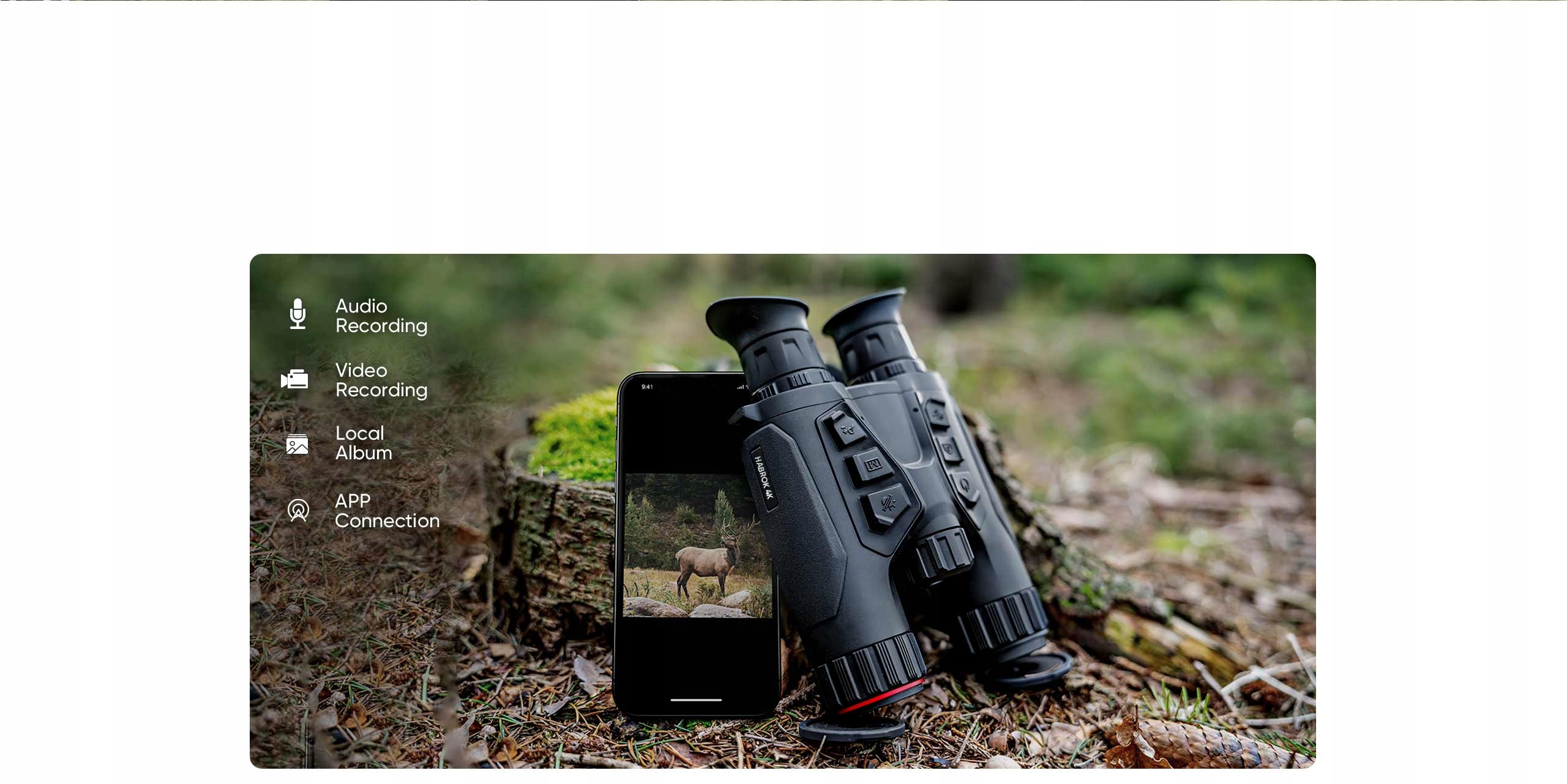 Однією з найбільших переваг полювання є можливість миттєво записувати захоплюючі та несподівані пригоди. За допомогою HIKMICO HABROK 4K ви можете створювати фотографії та відео захоплюючих подій одним натисканням і зберігати їх у локальному альбомі та програмі SIGHT, щоб не пропустити жодного чудового моменту.
