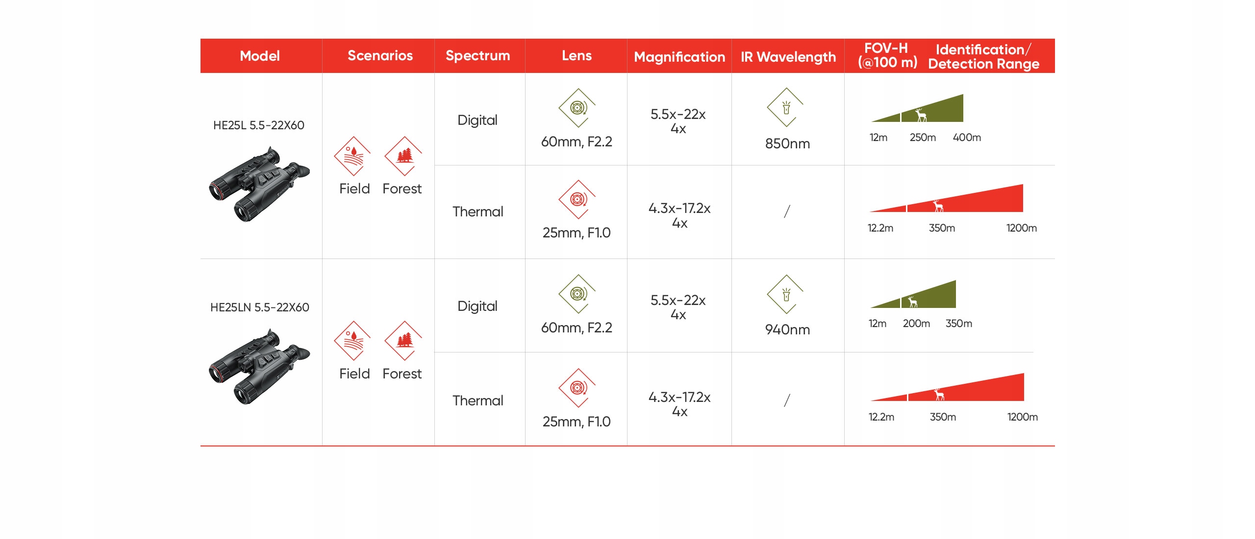 - Технологія подвійного датчика: використання вдосконаленого теплового датчика (256 x 192) і цифрової CMOS (3840 x 2160) забезпечує плавне перемикання між тепловим і нічним баченням, забезпечуючи чіткі зображення за будь-яких умов.