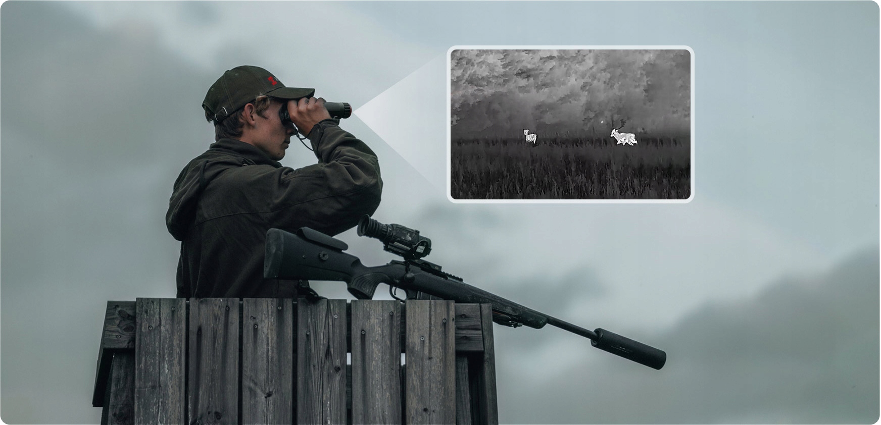 Високоякісні 2 датчики термічні 256x192 та цифрові 4k uhd забезпечують безпрецедентну якість зображення в теплових зображеннях з найбільшою детальною деталізацією зображення. інфрачервоний освітлювач з променем світла 940 нм дозволяє ефективно спостерігати навіть у найбільшій темряві, залишаючись невизначеними для тварин.