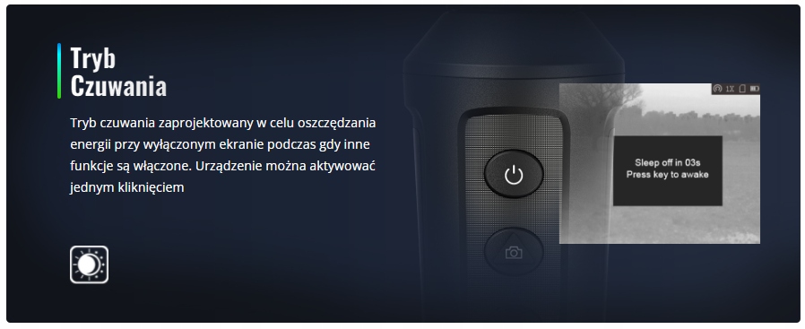 Камера теплової візуалізації LE15 оснащена корисним режимом очікування, призначеного для економії енергії. Режим очікування вимикає екран, але функції все ще активні. Після натискання на будь -яку кнопку екран повторно активований.