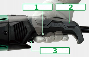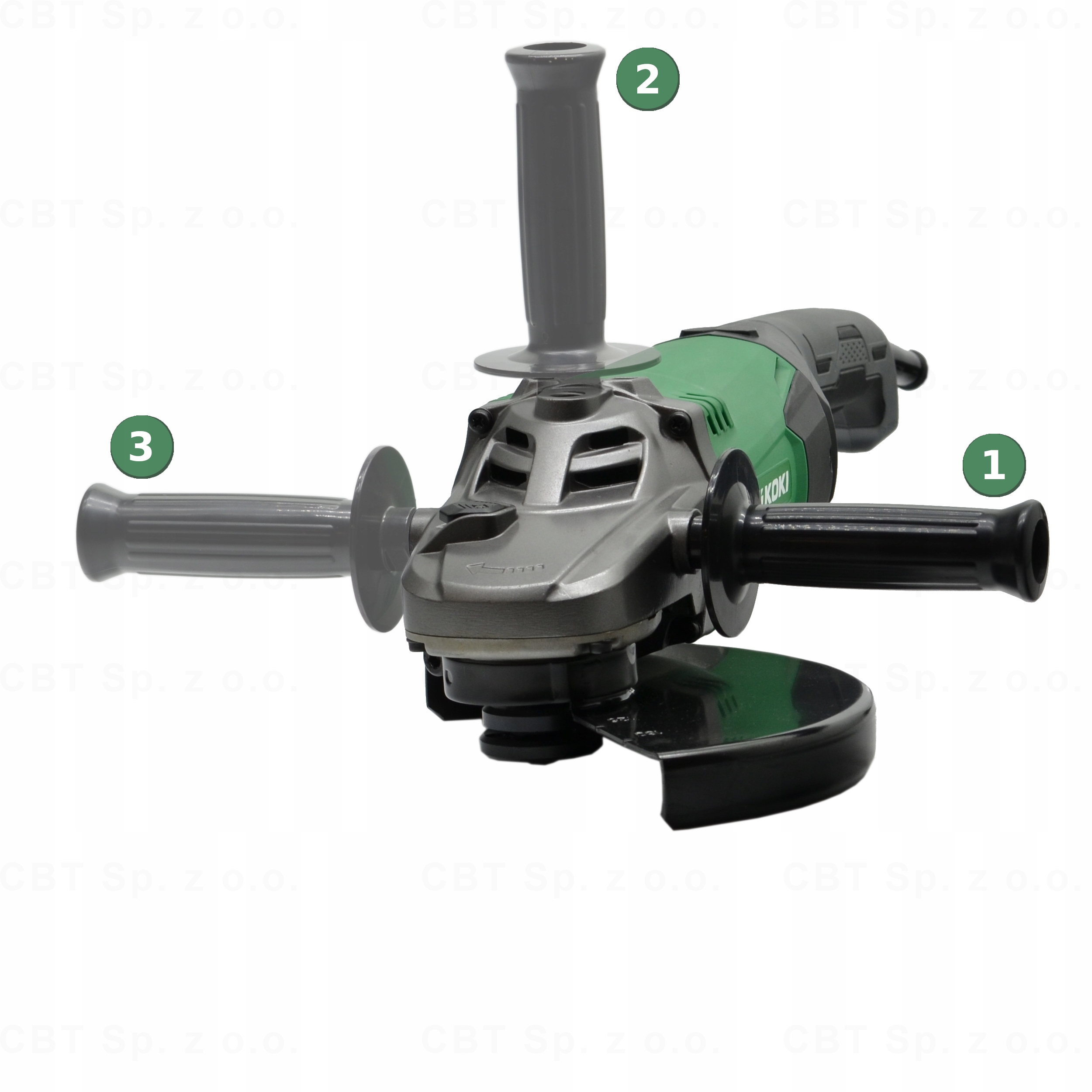 - Трипозиційна бічна ручка забезпечує керуванняв кількох положеннях. Встановлення бічної рукоятки у верхній частині інструменту дозволяє легко працювати у вузьких місцях