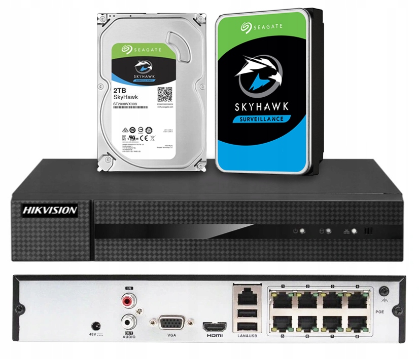NVR-8CH-POE IP-рекордер Hikvision PoE + диск Skyhawk 2 ТБ