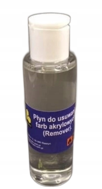 Хімічна рідина для видалення акрилових фарб. Площа, з якої ви хочете зняти фарбу, повинна бути зволожена рідиною і зачекайте мить, а потім вийміть фарбу за допомогою тканини. Якщо це можливо, рідкий предмет може бути занурений повністю, щоб видалити та очистити з фарбою тканиною або щіткою через кілька хвилин. p>