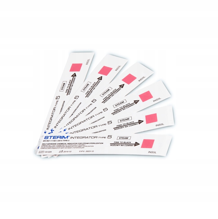 Перевірка індикатора дозволяє достовірно оцінити умови в стерилізаторі: якість пари, час витримки та ефективність пари, що досягає всіх упаковок. Тест-смужку слід помістити всередину упаковки, яку потрібно стерилізувати. Після завершення процесу - перевірте колір тестового поля на смужці. Підтвердженням досягнення необхідних умов стерилізації є зміна кольору тестового поля - з рожевого на чорний.