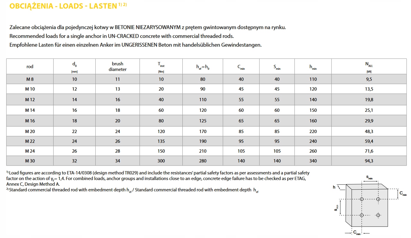 Ампули мають європейський сертифікат ETAдля кріплення в бетоні, без подряпин - варіант 7 - різьбові шпильки від M8 до M30