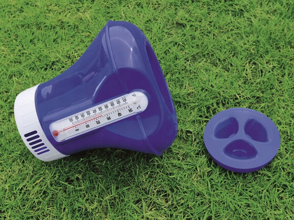 Пропонований диспенсер для плаваючого басейну оснащено термометром, який відображає значення в градусах Фаренгейта та Цельсія. Це дає можливість у будь-який час перевірити температуру води в басейні.