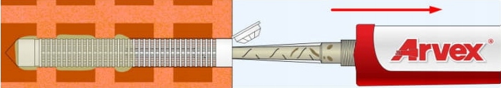 - 5. Перевірте, чи міномет заповнює отвір/рукав до краю. Вийміть непотрібний зайвий розчин, який вийшов з нори. Зачекайте час, необхідний для затвердіння міномету при заданій температурі. Зачекайте часу, необхідного для вилікування смоли при заданій температурі.
