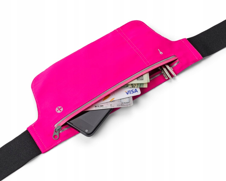 Практична маленька сумка на стегна. Це дуже добре працює під час бігу та подорожей. Сумка має одну кишеню на блискавці з портом для навушників і окреме відділення, наприклад для ключів. Оздоблений світловідбиваючою стрічкою для кращої видимості в темряві.