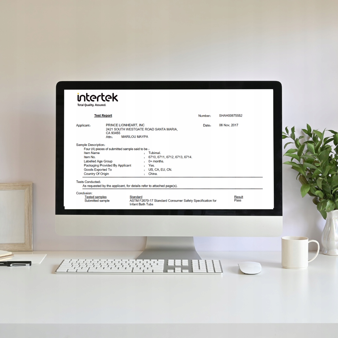 Ванна має сертифікати на використання дітьми в США, Канаді та Євросоюзі, виготовлені лабораторіями всесвітньо відомої компанії Intetrek.