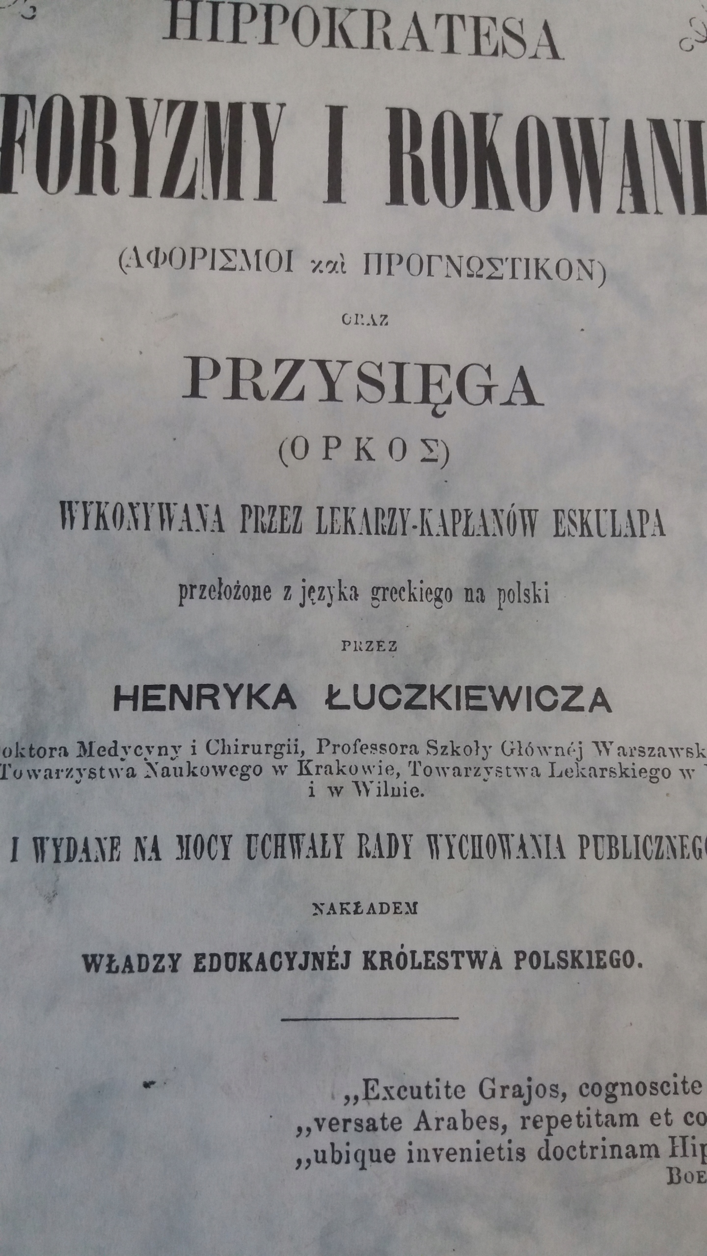 HIPPOKRATESA AFORYZMY I ROKOWANIA 1864 REPRINT