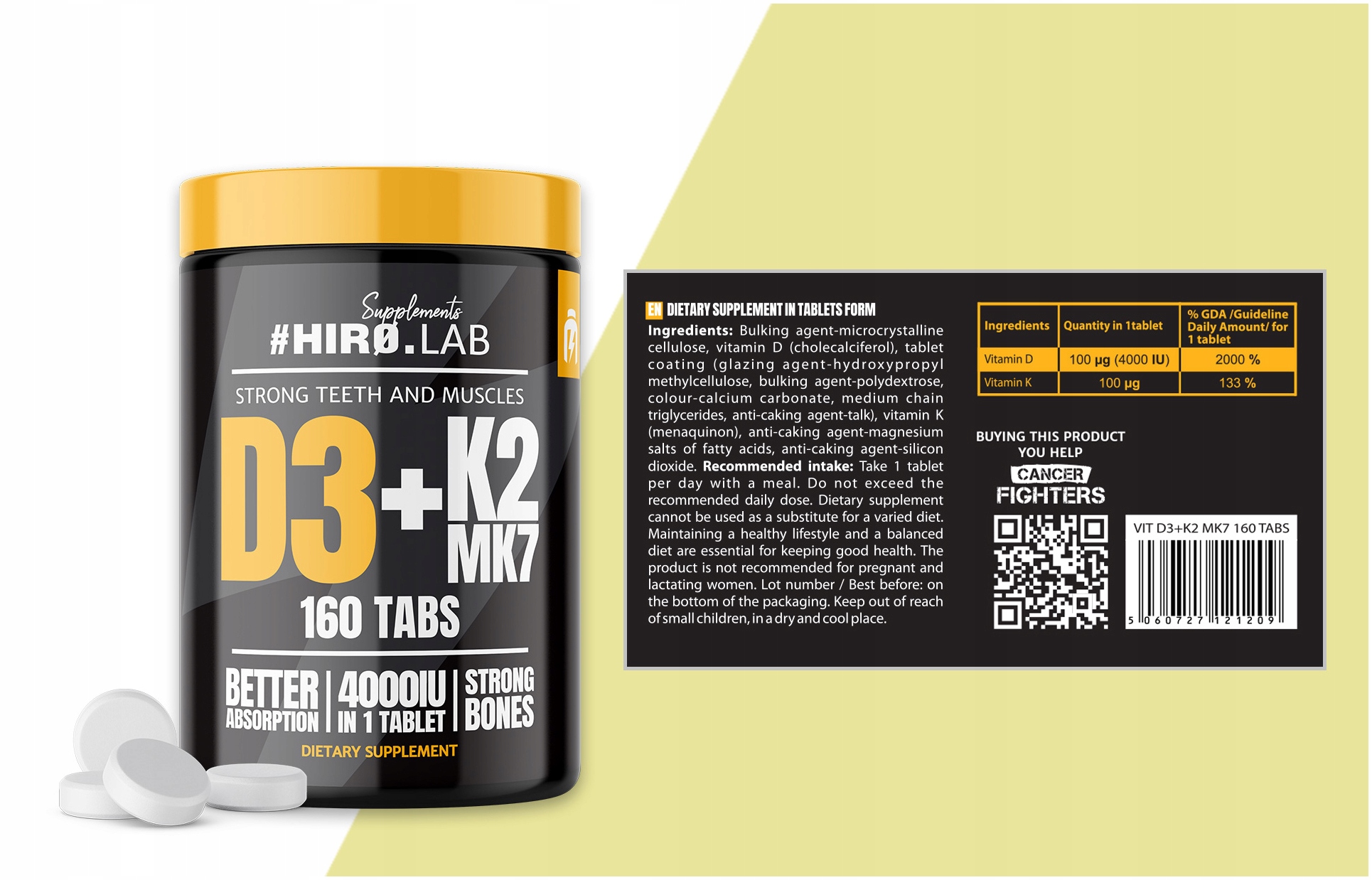 Якщо ви тренуєтеся, ваш організм має високу потребу у вітамінах і мінералах. Іноді хорошої дієти може бути недостатньо, щоб залишатися сильним. Щоб зупинити втрату енергії та стати сильнішим, бренд Hiro.Lab розробив добавку D3 + K2. Поєднання цих двох вітамінів підтримує імунітет, зміцнює кістки та захищає від інфекцій. Вітамін K2 MK7, присутній у продукті, так званий менахінон, характеризується високою абсорбцією та залишається в крові протягом тривалого часу. Ознайомтеся з дієтичною добавкою D3 + K2 від Hiro.Lab, і ваш розвиток м'язи будуть вдячні вам за додаткову підтримку!