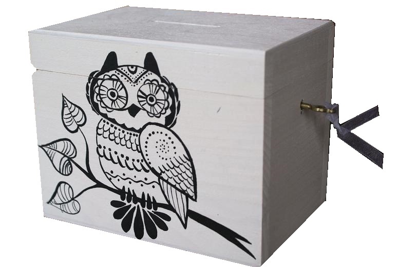 HIT Drewniana Skarbonka na kluczyk SOWY KOTY KONIE