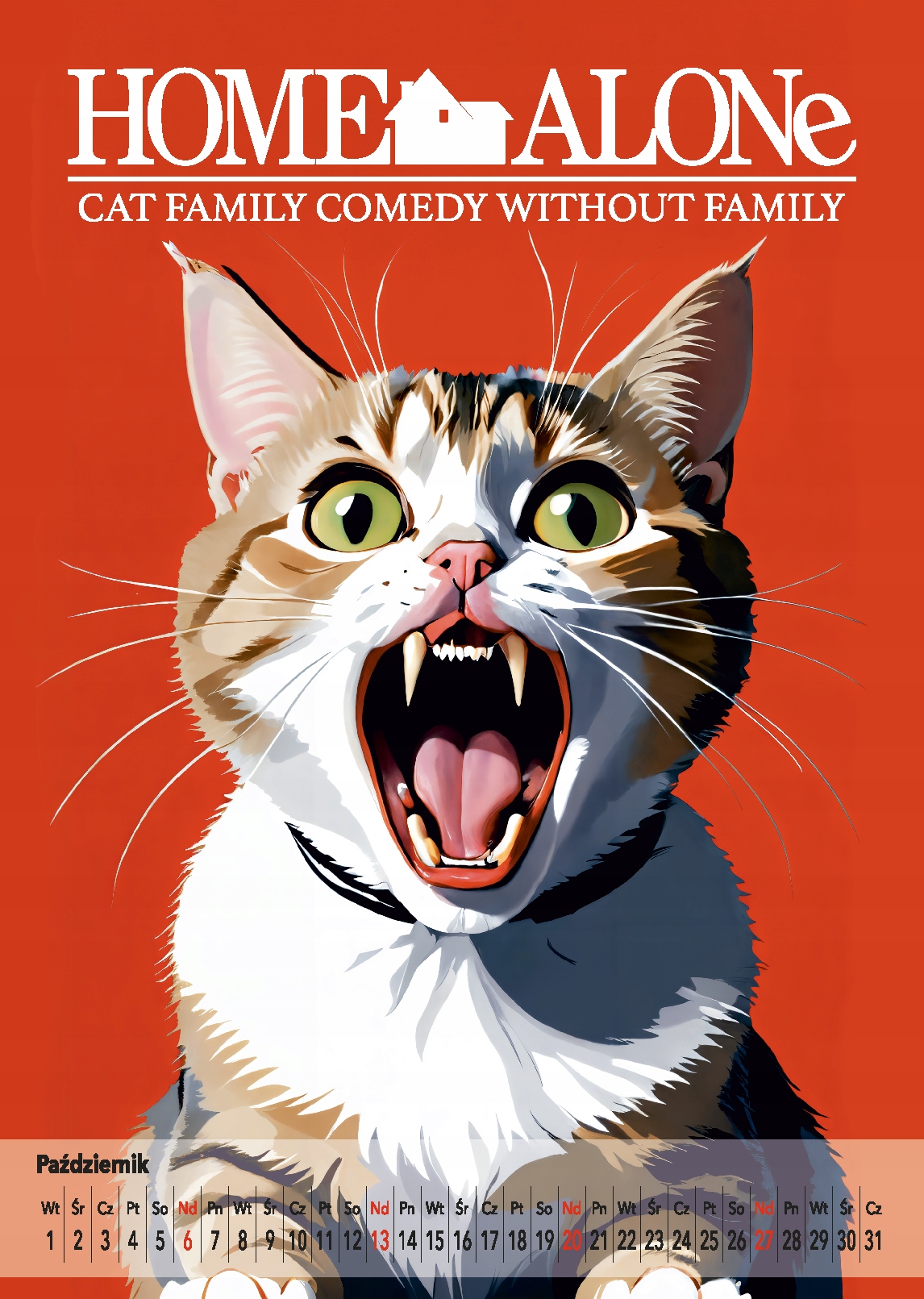 Ключові слова: календар 2025, коти, коти в кіно, настінний календар, фільми, пародія, поп-культура, календар з коти, подарунок для кіноманів, формат A3, ілюстрації.