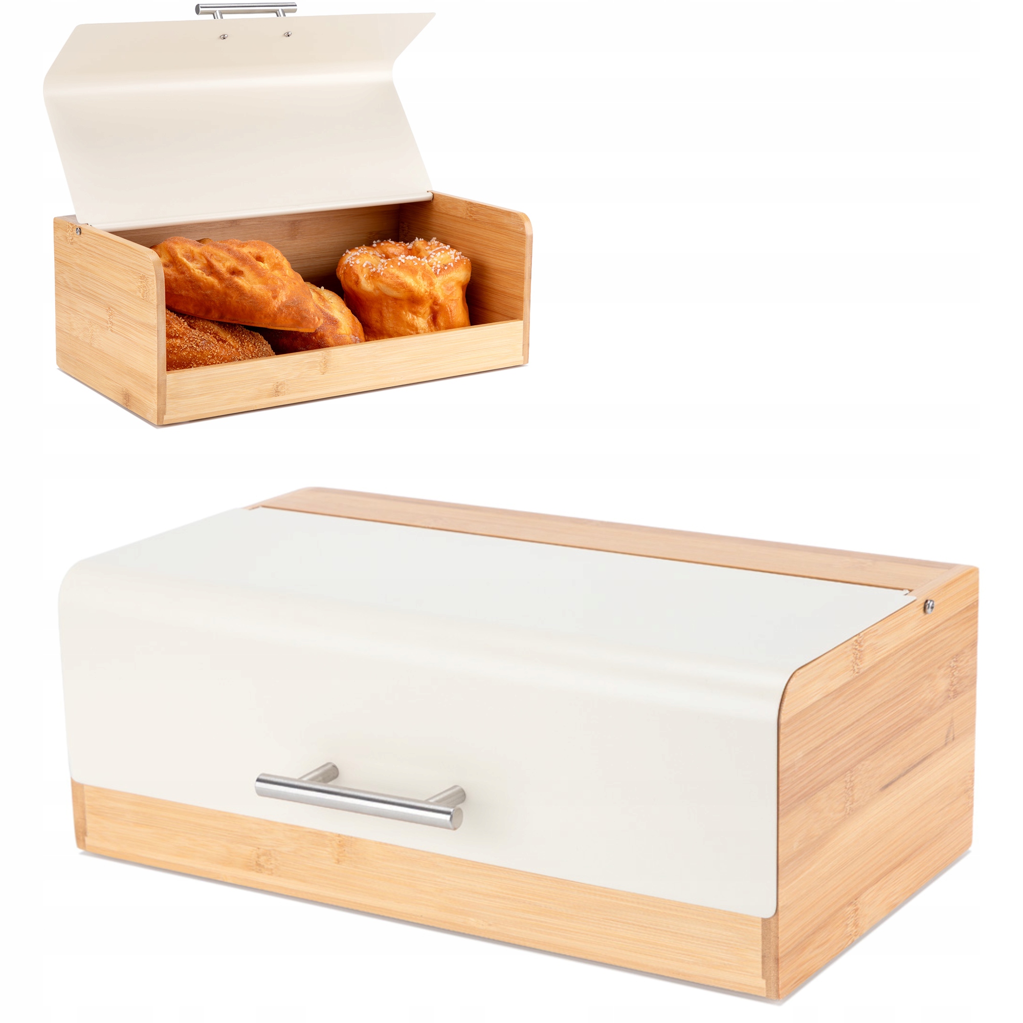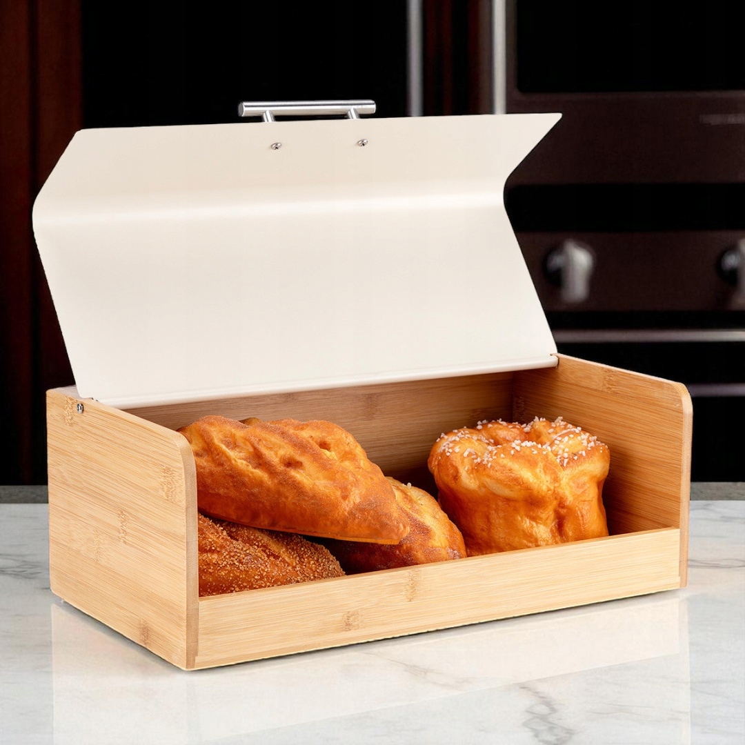 Сучасна форма хліба, його ефективна форма та комбінація металу в кремовому кольорі з бамбуком виглядають чудово на прилавку.