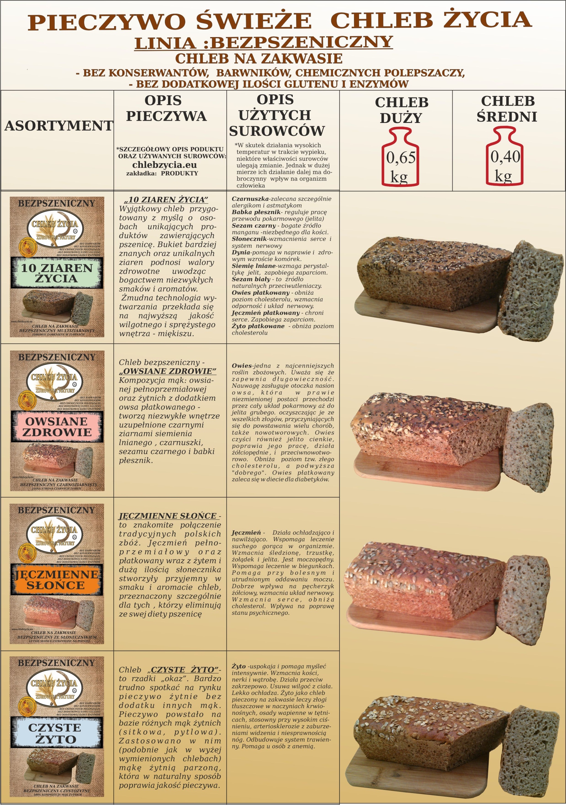 ХЛІБ ЖИТТЯ - 28 видів хліба, що виробляється в 9 серіях, які називаються лініями. Першою чергою виставлено на аукціон TRADYCJA PLUS. Це чотири хліба, які отримали ЛАВРУ МАРШАЛА МАЗОВЕЦЬКОГО у 2010 році. Цей рядок коротко описано в наступних папках. Наступні рядки з’являтимуться послідовно.