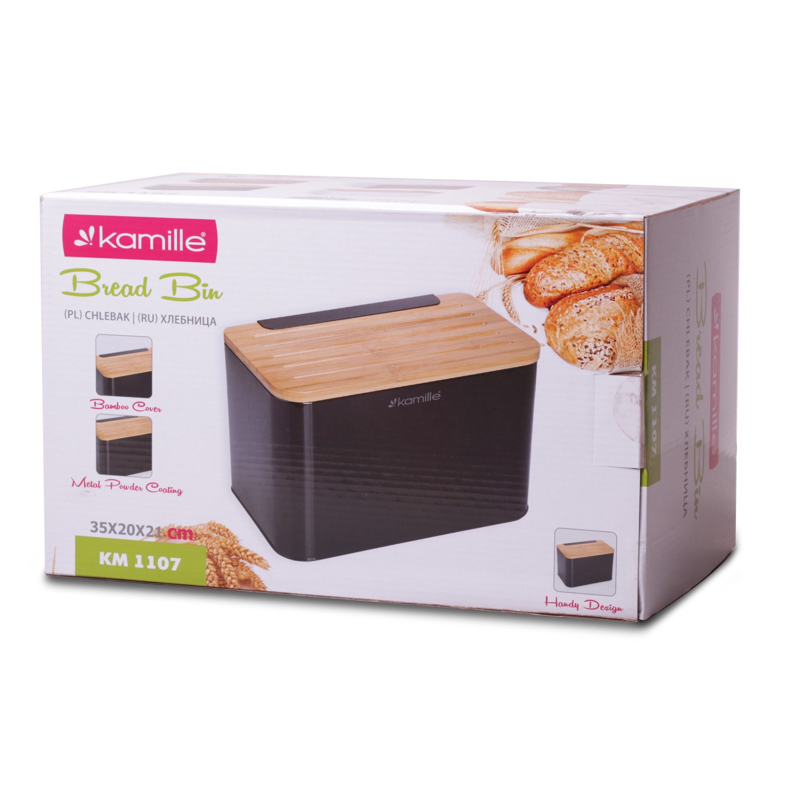 Сталева хлібниця з бамбуковою обробною дошкою KAMILLE KM-1107