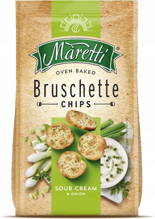 Bruschette Maretti – це смачні шматочки запеченого хрусткого хліба. Вони виготовлені з ретельно відібраних інгредієнтів. Хрусткі та смачні закуски, чудово приправлені, доступні в різноманітних цікавих смаках. Ці інтригуючі смаки отримали нову, стильну упаковку, яка викликає в нас непереборне бажання потягнутися за черговою порцією міні-дисків. Таке велике різноманіття - запорука того, що кожен обов'язково знайде свій улюблений смак.