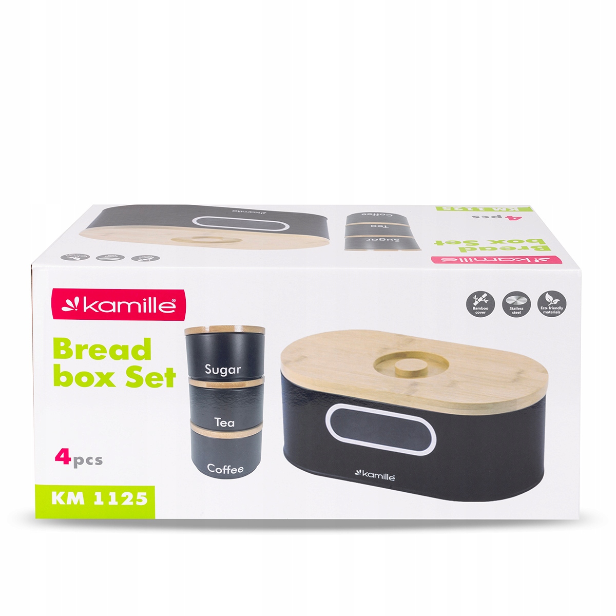 ➡️ Стильна та сучасна хлібниця Kamille із 3 контейнерами ідеально підходить для зберігання кави, чаю та цукру. Завдяки оригінальному дизайну контейнери стануть цікавим декоративним елементом кухні.