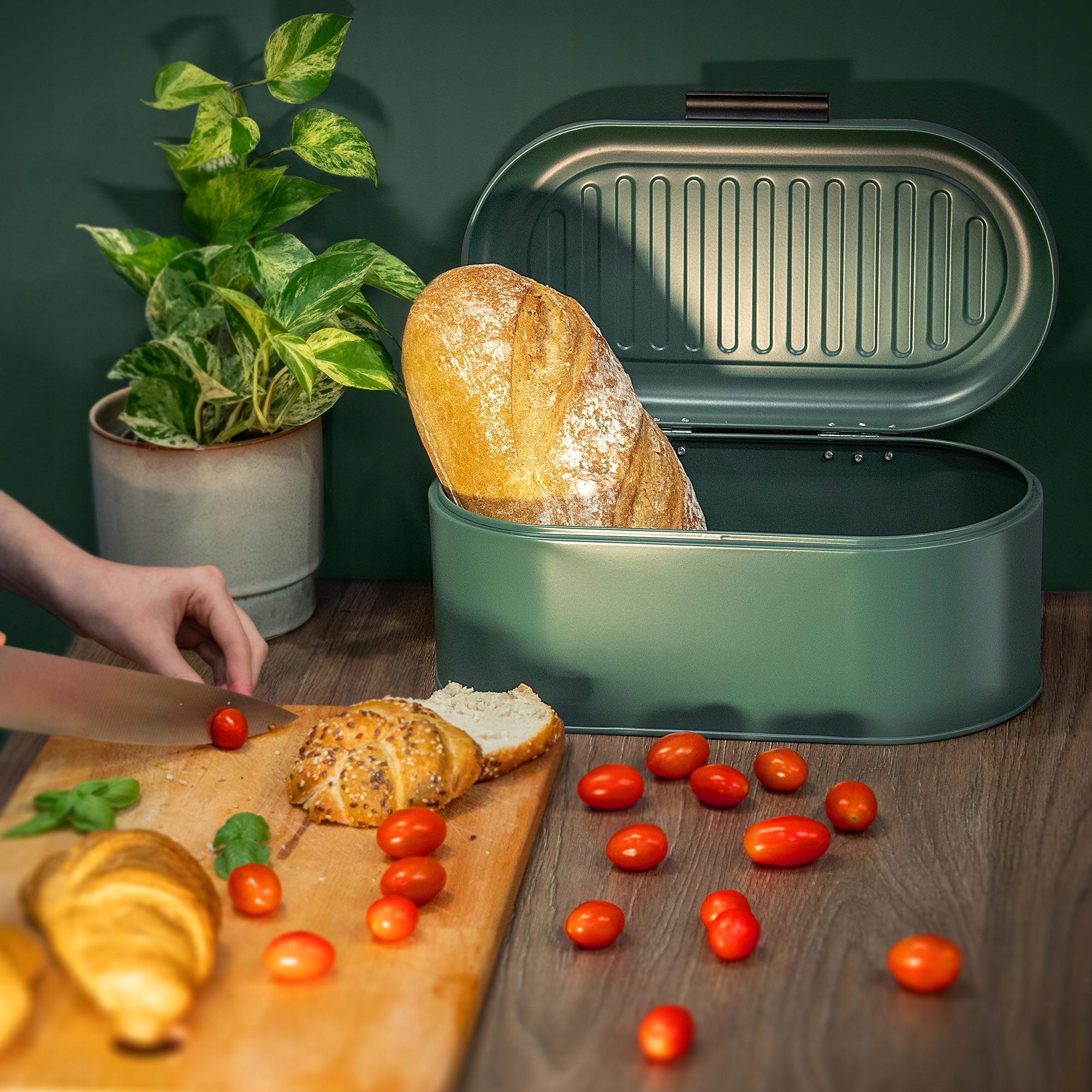 ✅ФУНКЦІОНАЛЬНИЙ - хлібниця з щільною кришкою забезпечує ефективний захист від втрата свіжості хліба. Крім того, запобігає утворенню цвілі. Тому вам не потрібно турбуватися про смак і якість вашого хліба та булочок.