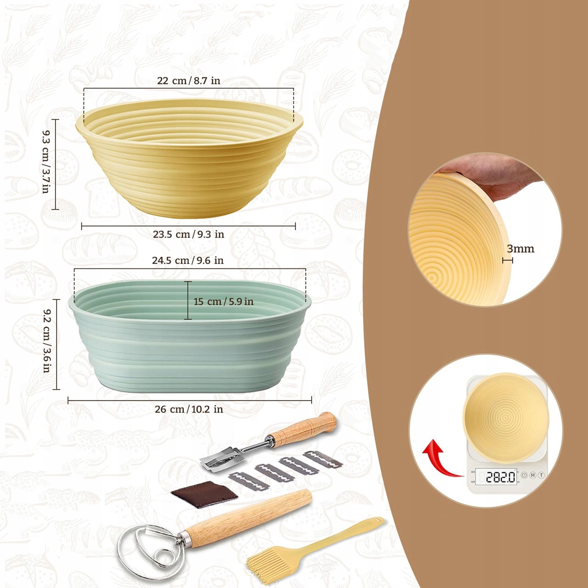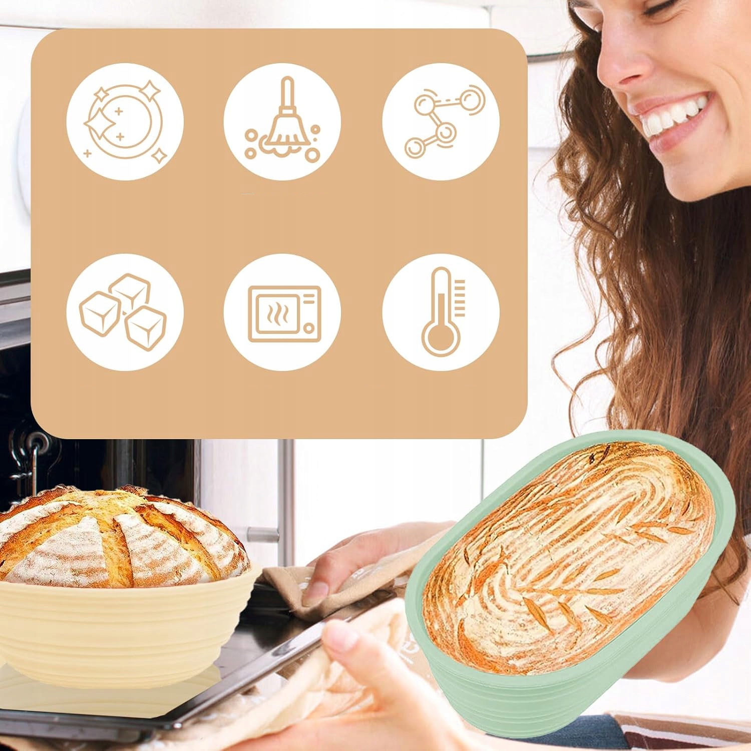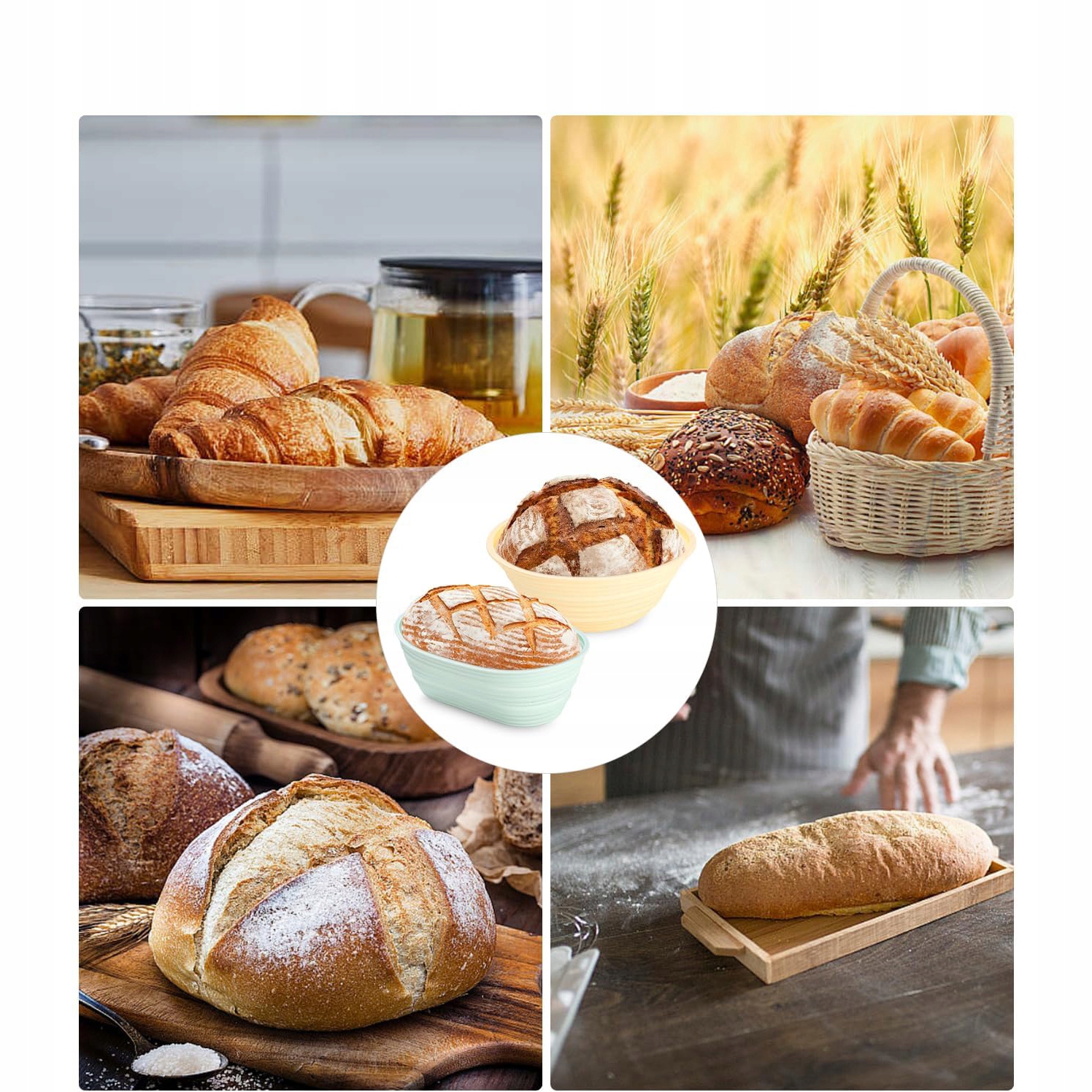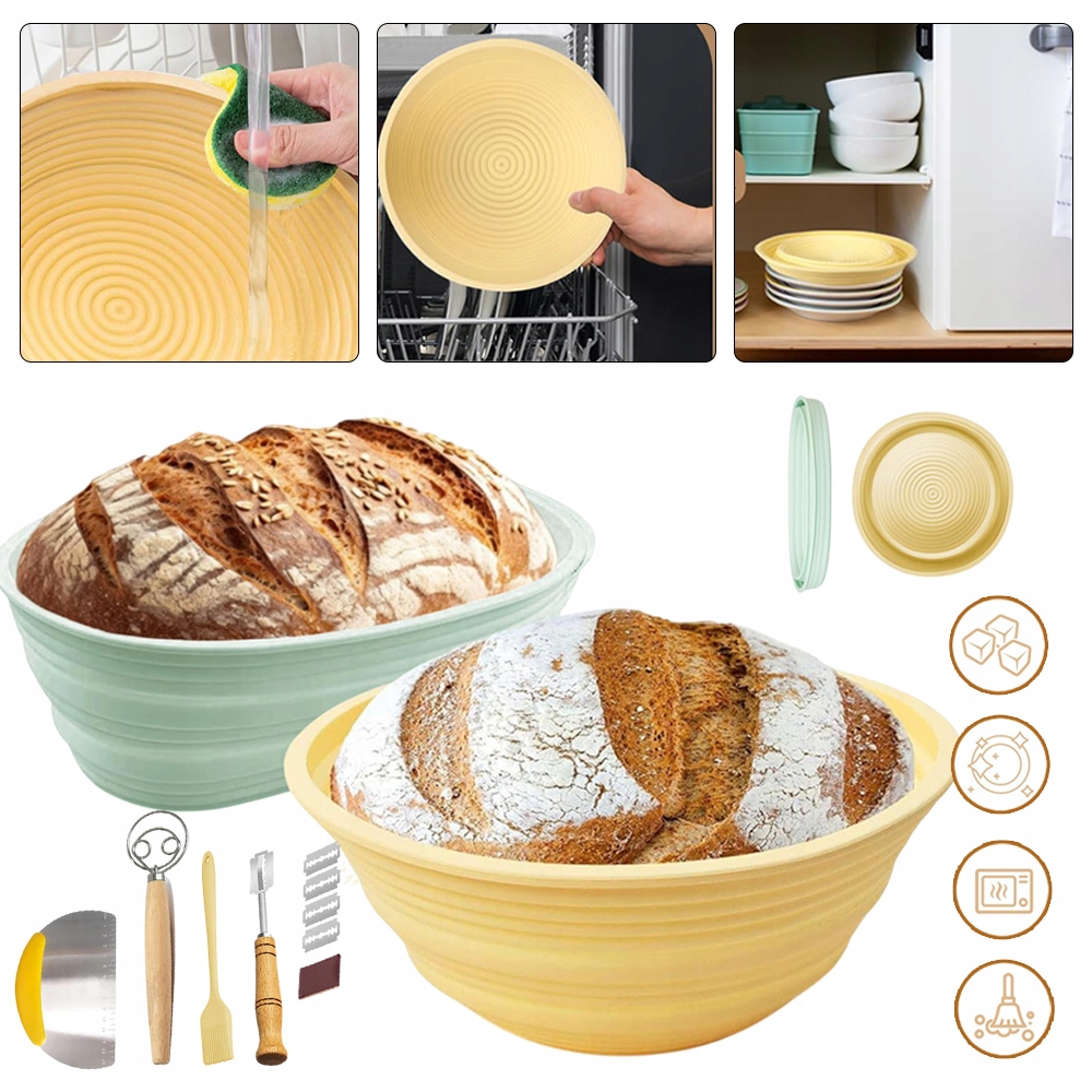 🥖🥖Круглі та овальні кошики для банетонів -Цей набір включає 2 різні розміри кошиків для банетонів для різної форми хліба. Виготовлені з харчового силікону, без барвників і хімікатів, кошики не пліснявіють і не тріскаються. Складається, щоб заощадити місце на кухні.