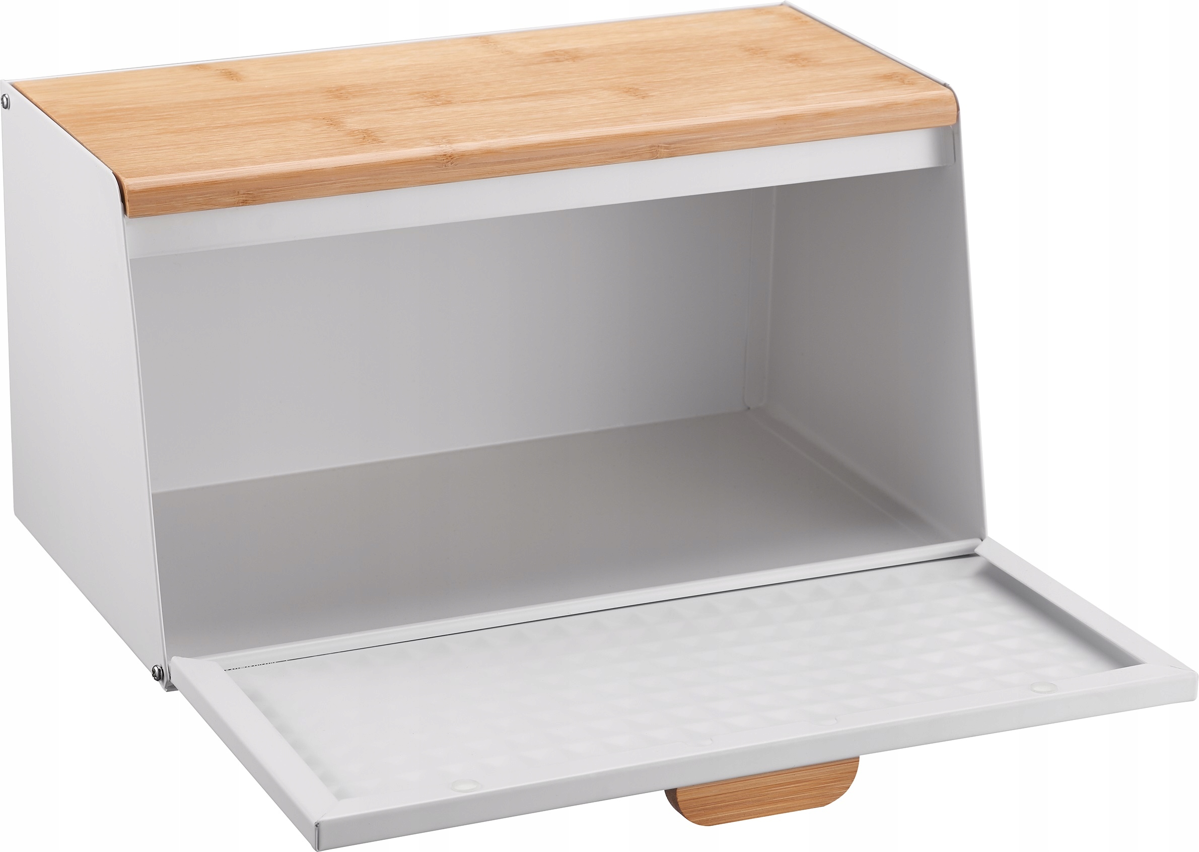 Кришки з металу та бамбукового дерева відкриваються з обох сторін, що доводить надзвичайну функціональність хлібниці.
